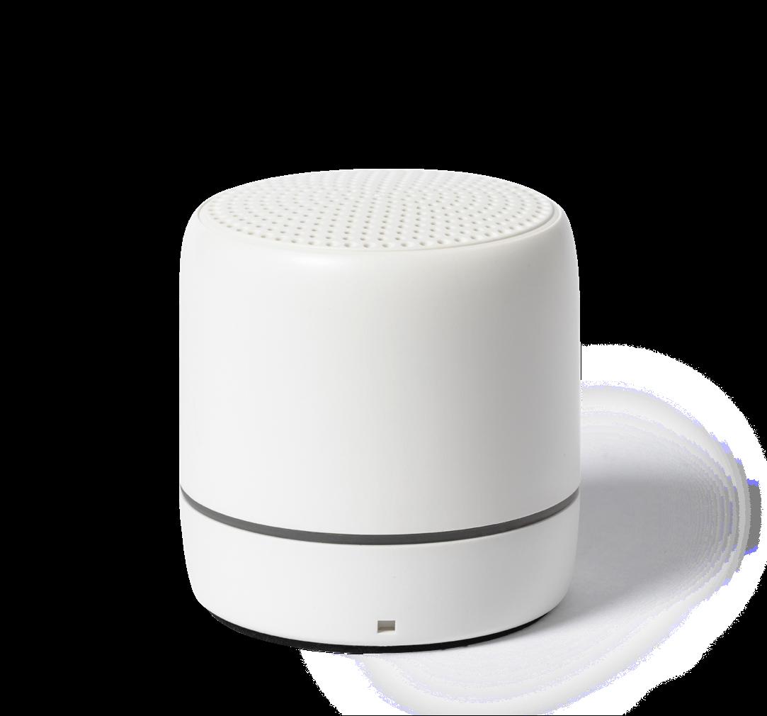 Speaker. Recycled ABS. Bluetooth Connection. Sound Power 3W. Battery 400 mAh.