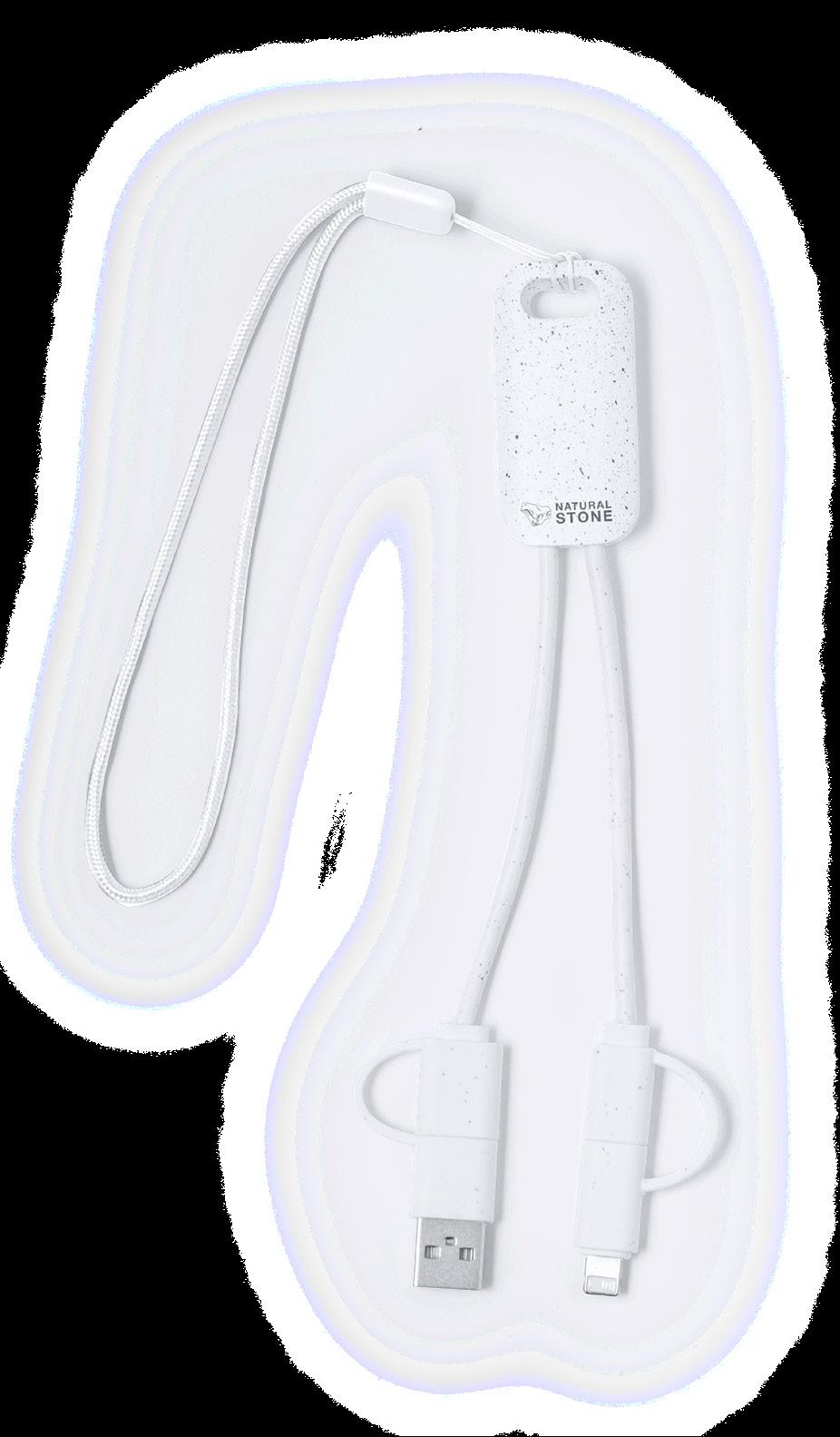 Charging Cable. Natural Stone Extracts/ ABS. Micro USB, Type C and Lightning Connection 5V DC 2.4A.