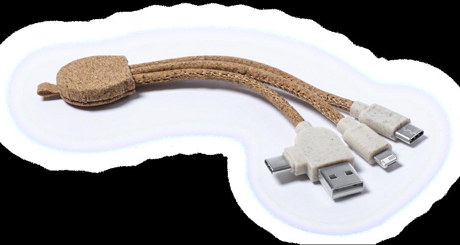 Charging Cable. Cork/ Wheat Straw/ PP. Micro USB, Type C and Lightning Connection 5V DC 2.0A.