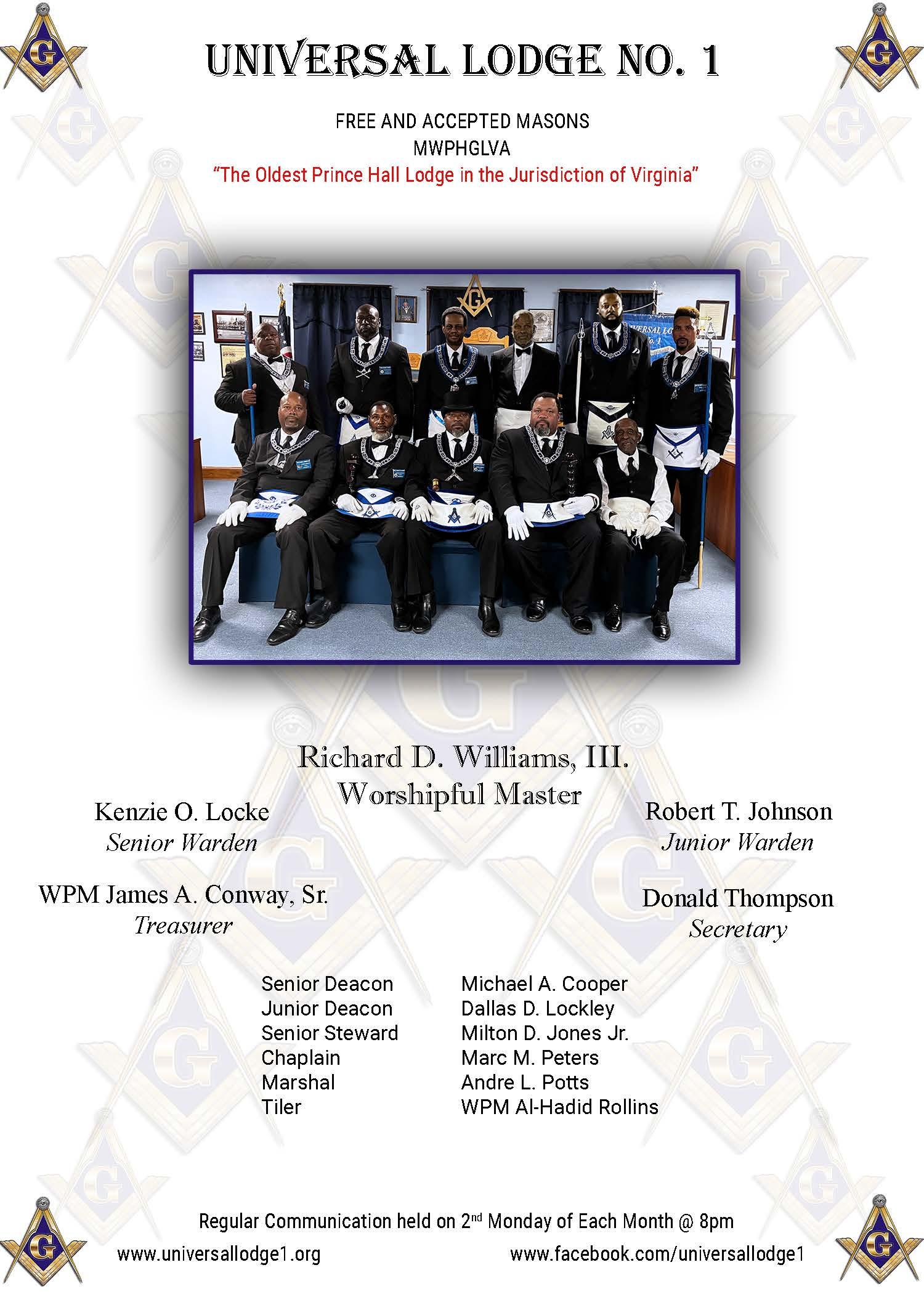 Worshipful Past Master Andre Beary Master Mason Edward Phifer Master Mason Michael A. Smith