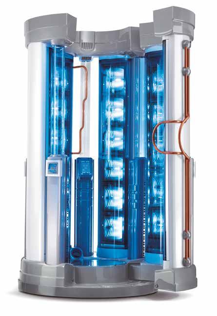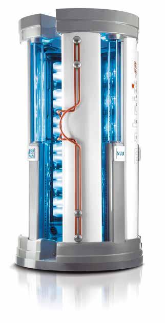 Grazie alla disposizione strategica dei tubi e delle lampade, alle caratteristiche personalizzate per la gestione della seduta e ai dispositivi tecnologici, questo solarium si distingue come un prodotto unico nel suo genere, altamente richiesto e apprezzato dai centri abbronzatura in tutto il mondo.