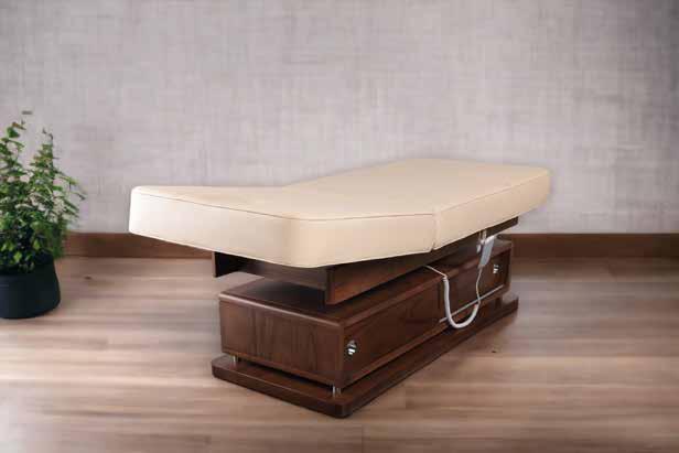 First Class è progettato per soddisfare le esigenze degli operatori e dei loro clienti. Dotato di quattro motori, offre la regolazione elettronica dell'altezza, dell'inclinazione del materasso, dello schienale e delle gambe, adattando il lettino alle esigenze specifiche di ogni cliente.