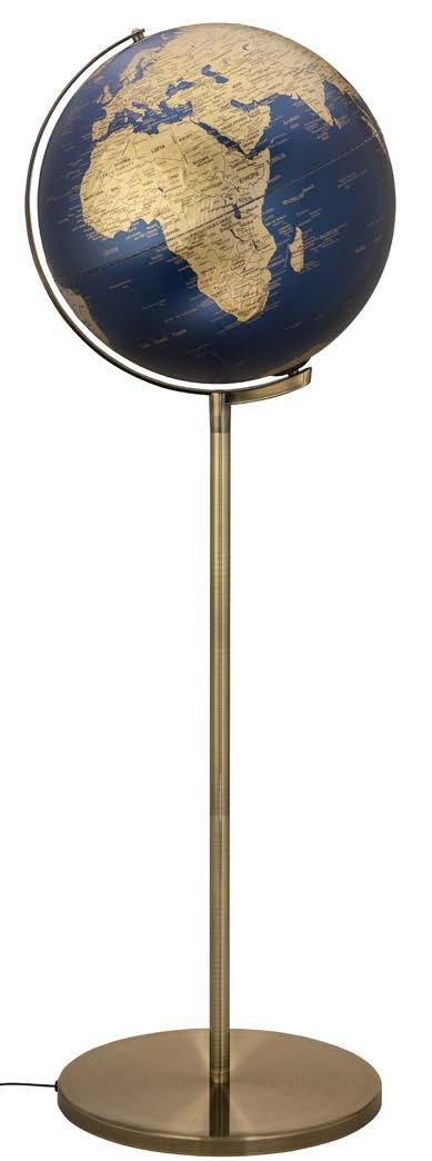 360° LUMINOSITY With a 43 cm diameter and two adjustable axes, this design globe offers an impressive 360° experience. The detailed cartography with raised relief and matte surface comes to life through the rechargeable SOMPEX LED module – featuring two light modes (3,000 K / 2,200 K), dimming, and a memory function. A FSC-certified wooden stand with an antique gold metal base adds a touch of elegance. The built-in 2,000 mAh battery is USB-C rechargeable –including a magnetic cable for maximum flexibility. Standing 1.32 m tall, the APOLLO LIGHT FLEX becomes a radiant highlight in any room.