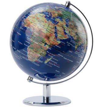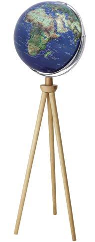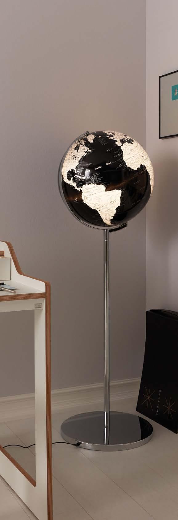 Ideal tilt angle. The Earth is “round” and it rotates – but it also has a tilt of exactly 23.5 degrees. Our classic glo-be is designed true to scale and tilted at precisely this 23.5-degree angle. With a diameter of 25 cm, a raised relief map and a high-quality chromeplated metal base, it’s a real eye-catcher. Featuring capitals, mountain ranges, count-ries and oceans, it’s the perfect globe for true geographic explorers.