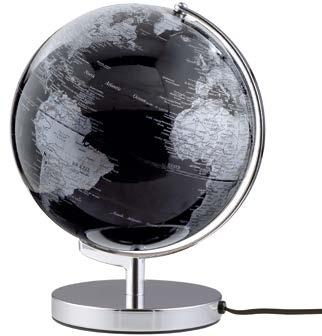 An attractive eye-catcher that makes itself useful: The Englishlanguage globe TERRA LIGHT provides quick orientation and is at the same time a decorative accessory for offices, living rooms and children‘s rooms with its large color selection and integra-ted LED lighting. Other features include the high-quality chrome-plated metal frame and a black cable with Euro plug and switch.