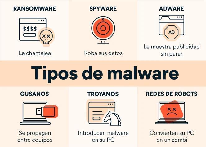 • Ransomware: Cifra tus archivos o bloquea tu sistema y exige un rescate (usualmente en criptomonedas) para restaurar el acceso. Es una de las amenazas más lucrativas y destructivas.