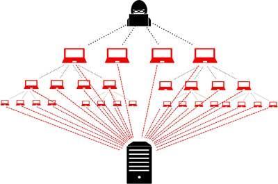 La versión más potente es el Ataque Distribuido de Denegación de Servicio (DDoS). Aquí, la inundación de tráfico proviene de múltiples fuentes coordinadas (a menudo una "botnet" de miles de ordenadores comprometidos), lo que hace mucho más difícil bloquear el ataque.