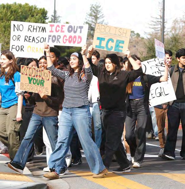 GUNN STUDENTS walk out of class yesterday to protest ICE. See story on PAGE 6. Photo by Paul Sakuma.