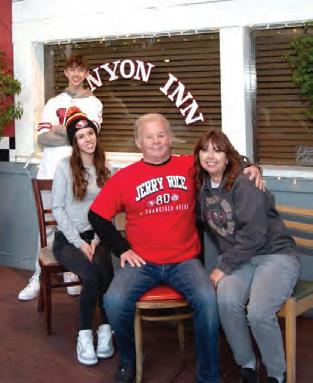 SINCE 1973 CANYON INN HAS been a neighborhood gathering spot for birthdays, events, team parties, or just a fun place for a burger and a beer. If you need a break from cooking and you like good burgers, head over to 587 Canyon Road in Redwood City. It has a great atmosphere, including old 49ers memorabilia that will take you back to your childhood. For more information, please call (650) 369-1646. Shown in the photo are Tim and Stephanie Harrison’s children, Alicia and Timmy.