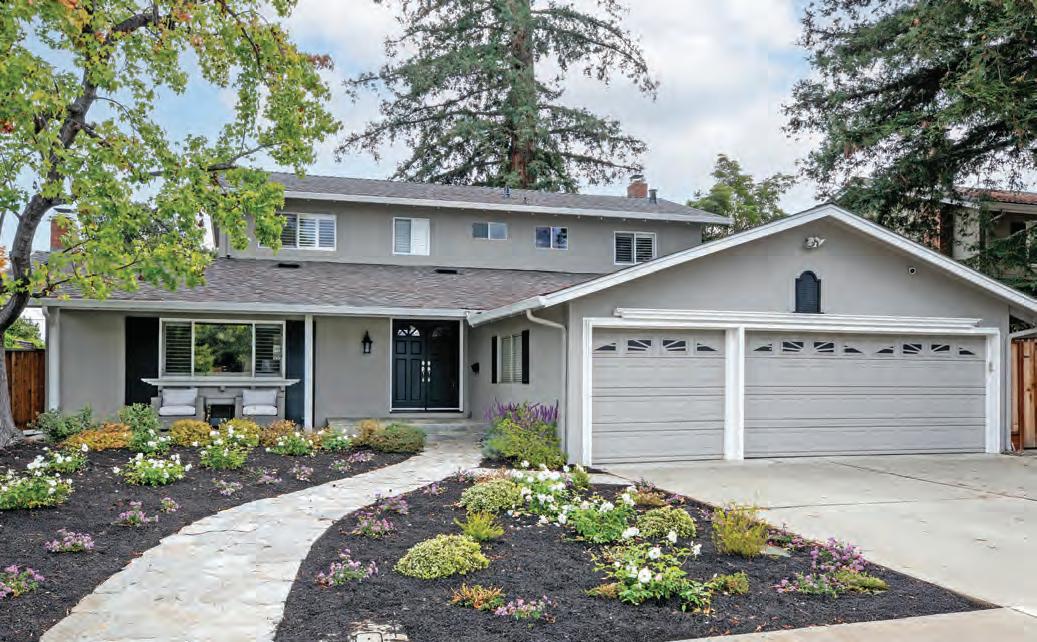 more than one-third-acre lot in one of Sunnyvale’s most sought-after neighborhoods. Newly refreshed landscaping introduces the graceful two-level design, highlighted by its signature covered upstairs balcony and double-door entrance adorned with leaded glass. Inside, spotted gum