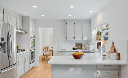 • Spacious skylit kitchen with island seating, wine bar, and high-end appliances