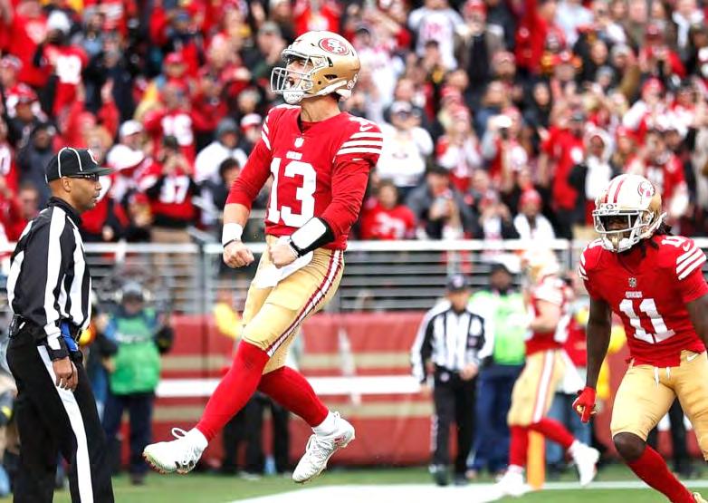 Receiver Jauan Jennings returned to practice yesterday for the first time in two weeks and is listed as questionable. Receiver Ricky Pearsall is also questionable with a knee injury but said earlier in the week that he will play.