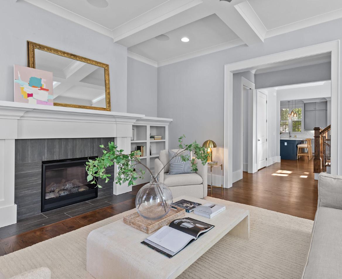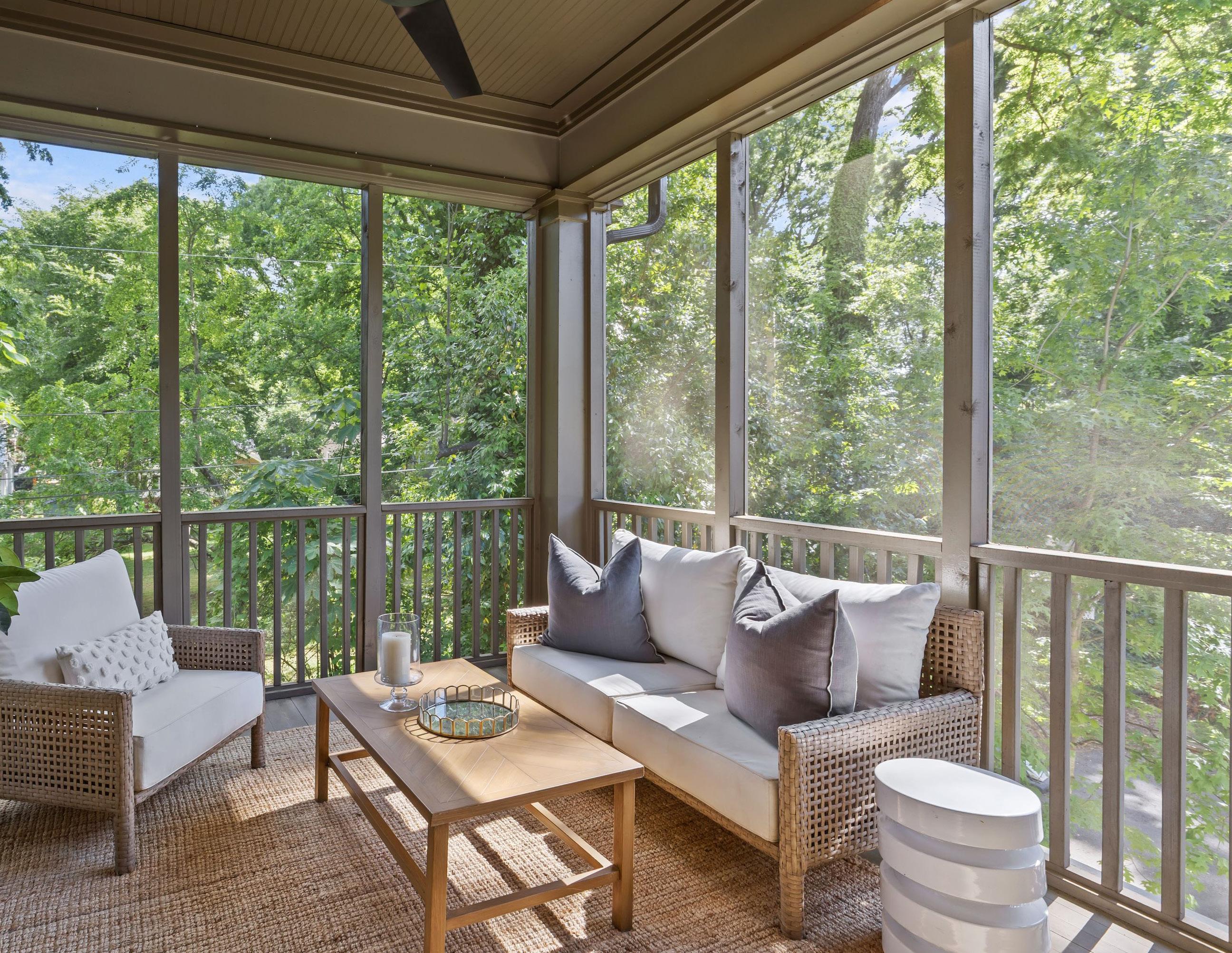 Extraordinary end-unit townhome in prime location — convenient to Park Road Shopping Center, Freedom Park, Little Sugar Creek Greenway, and the airport! This luxurious home features sophisticated design elements including 10’ ceilings, hardwood floors, coffered ceilings, a gourmet kitchen with GE gas range, stainless steel exhaust hood, GE beverage refrigerator, tile backsplash, built-in Thermador microwave, pantry, kitchen island — open to the dining/breakfast room and adjacent to screened porch overlooking a private wooded area. Family room complete with gas fireplace, built-in bookcases and an abundance of natural light. Office nook located across from half bath. Secondary bedroom on the lower level currently staged as an exercise room — with backdoor access to covered porch and fenced wrap-around yard space. Upstairs primary suite with shower, freestanding soaking tub, and walk-in closet. All bedrooms with ensuite baths. A must-see!