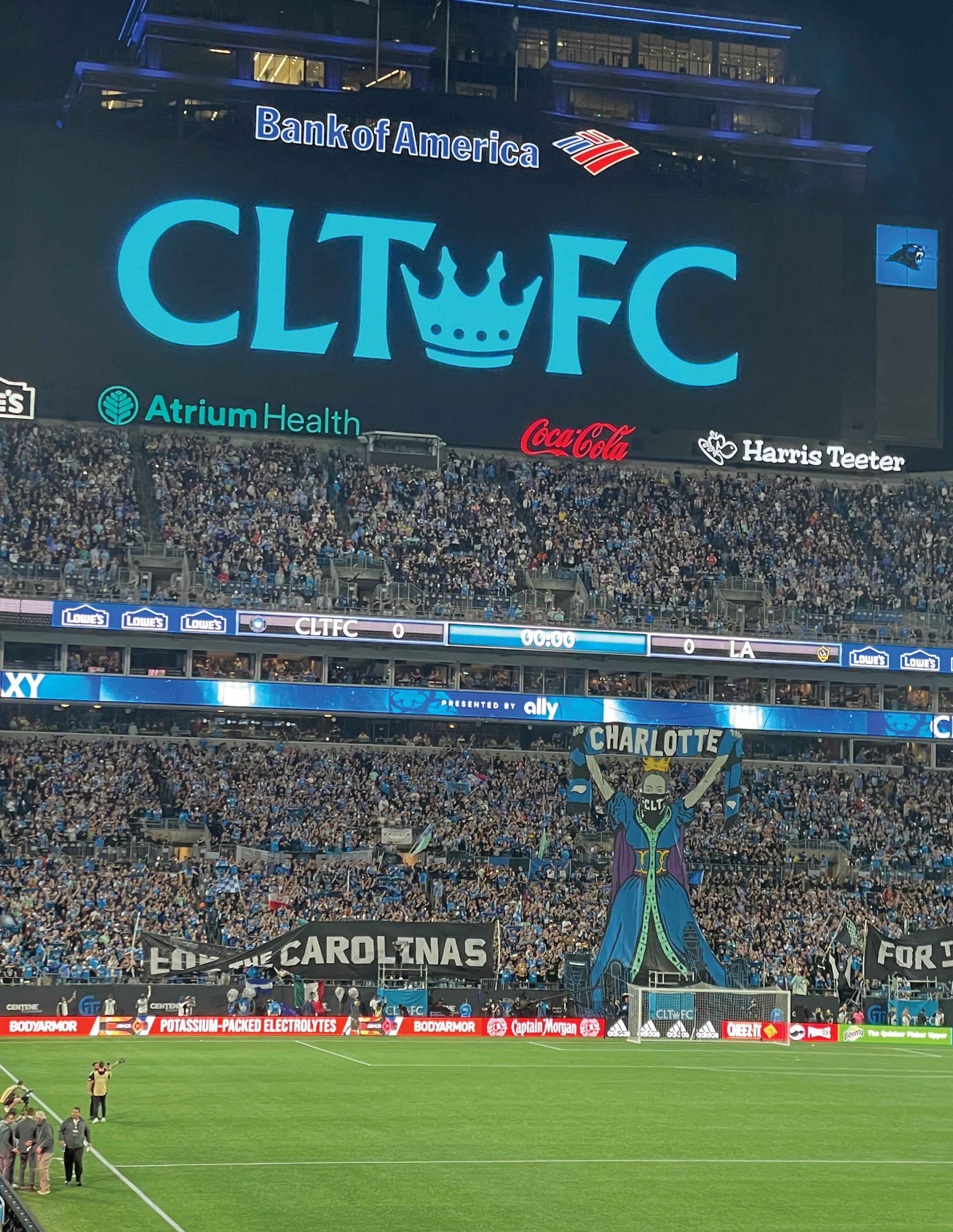 LEFT FROM THIS PAGE: BANK OF AMERICA STADIUM, BANK OF AMERICA STADIUM, SPECTRUM CENTER AND TRUIST FIELD.