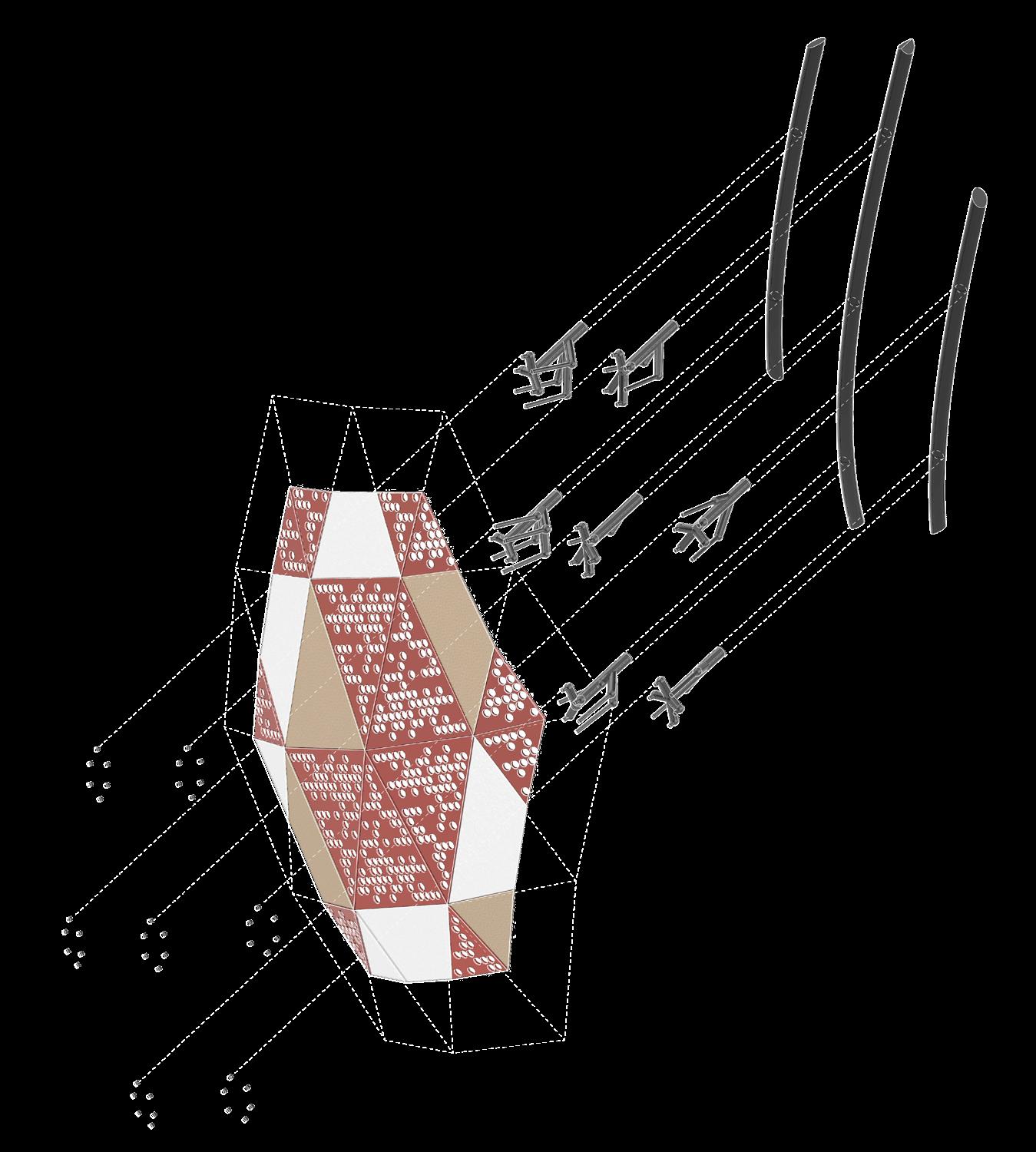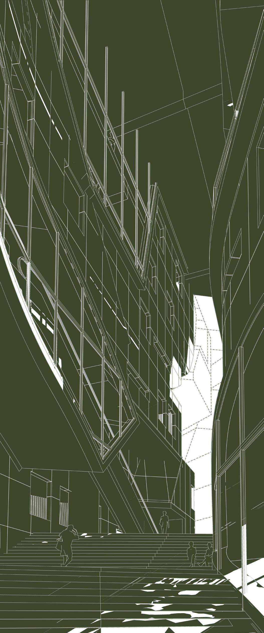 thesis deliverable [chunk axon] enscape buildings should be investigated just as much as anatomy does the ghosted portion exhibits the further extents of the project. This particular chunk exhibits just 5% of the total designed typology proposal iteration