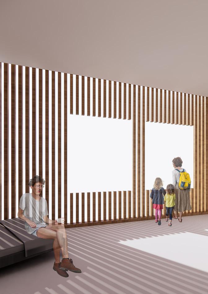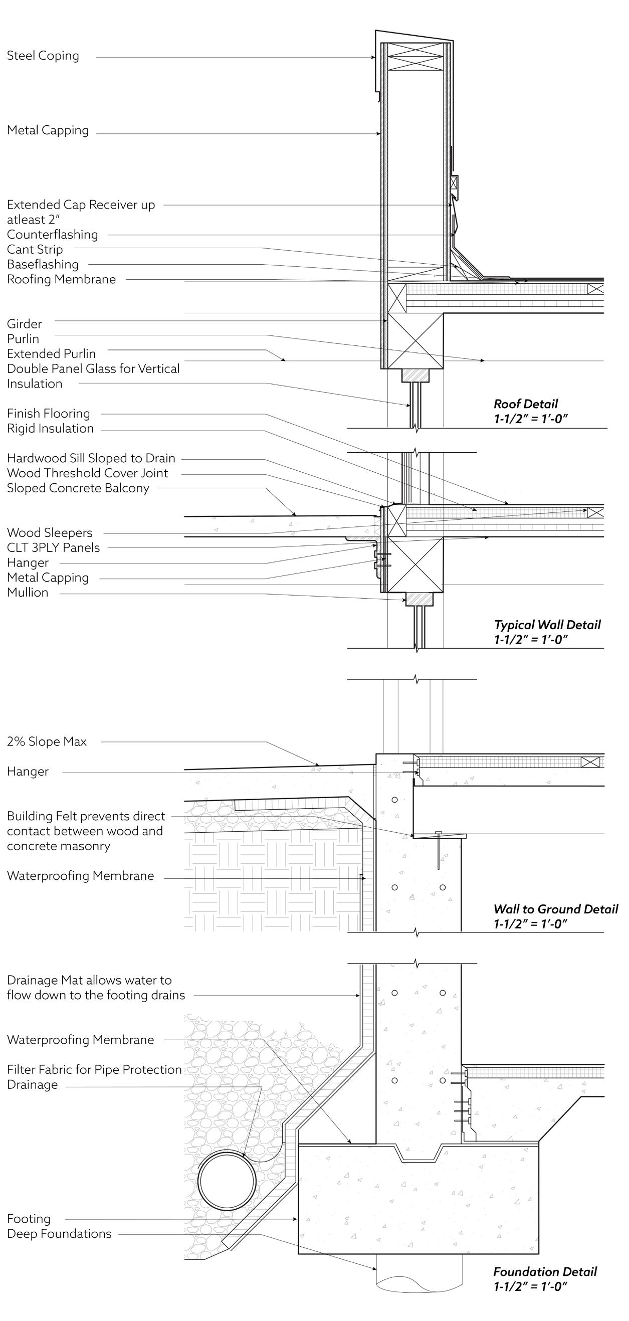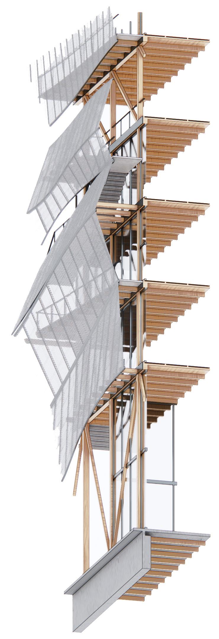 studio deliverable [details] scale: aesthetic auto cad illustrator enscape waves of metal perforation hang on warm timber members cool vs. warm you can have a drink on the balcony too tectonica wall