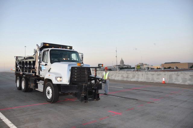 “We break it up into five lanes and pass the trucks in increasing weight — a single truck then two trucks together and then four trucks, over the bridge,” Emerson said. “This is the best way for us to get an increase in loading and see the bridge’s response to the weight increase.”