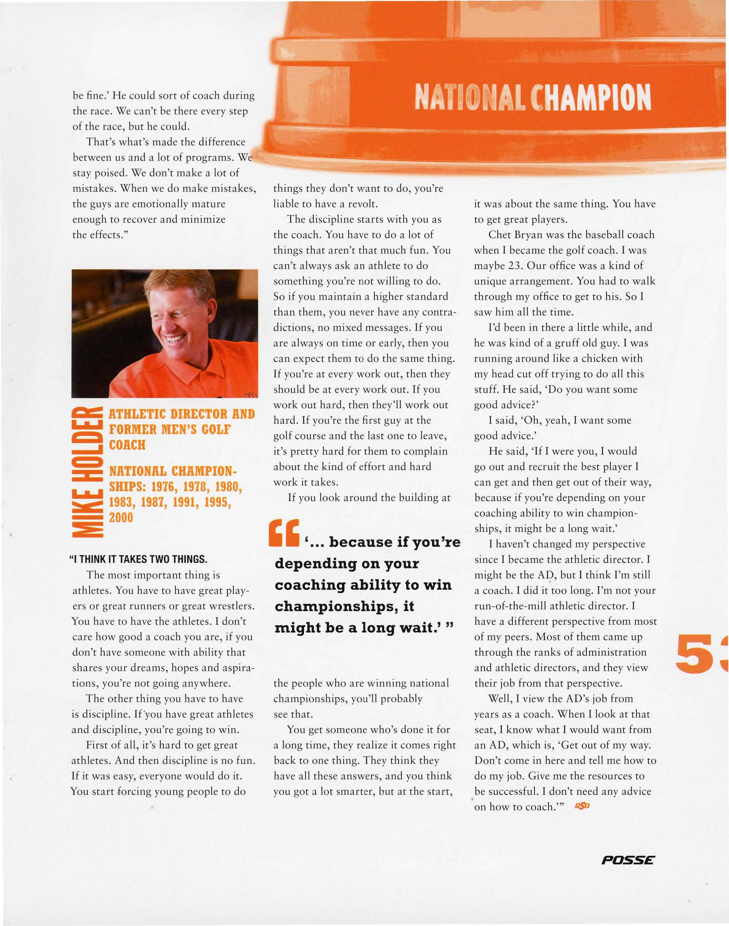 "We wouldn't have gotten to where we did with the OSU golf program if it hadn't been for those three guys," says Holder. "Ultimately, that transcended golf and morphed into the whole athletic program, primarily
