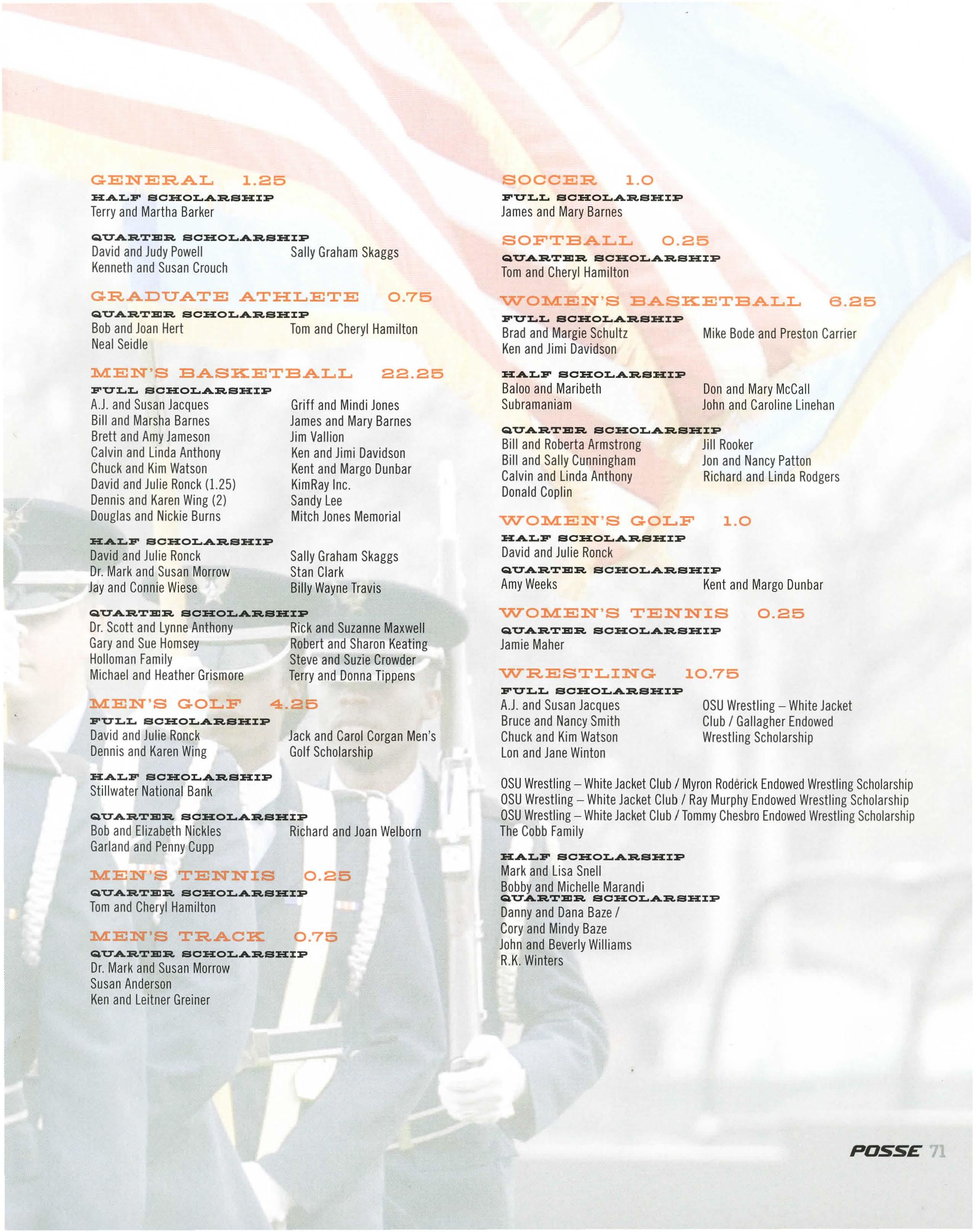 Points never diminish and will carry over to subsequent years. Donors retain all previously earned Priority Points in their giving history. For questions about the POSSE Priority Point System, email posse@okstate.edu or call us at 405-744-7301.