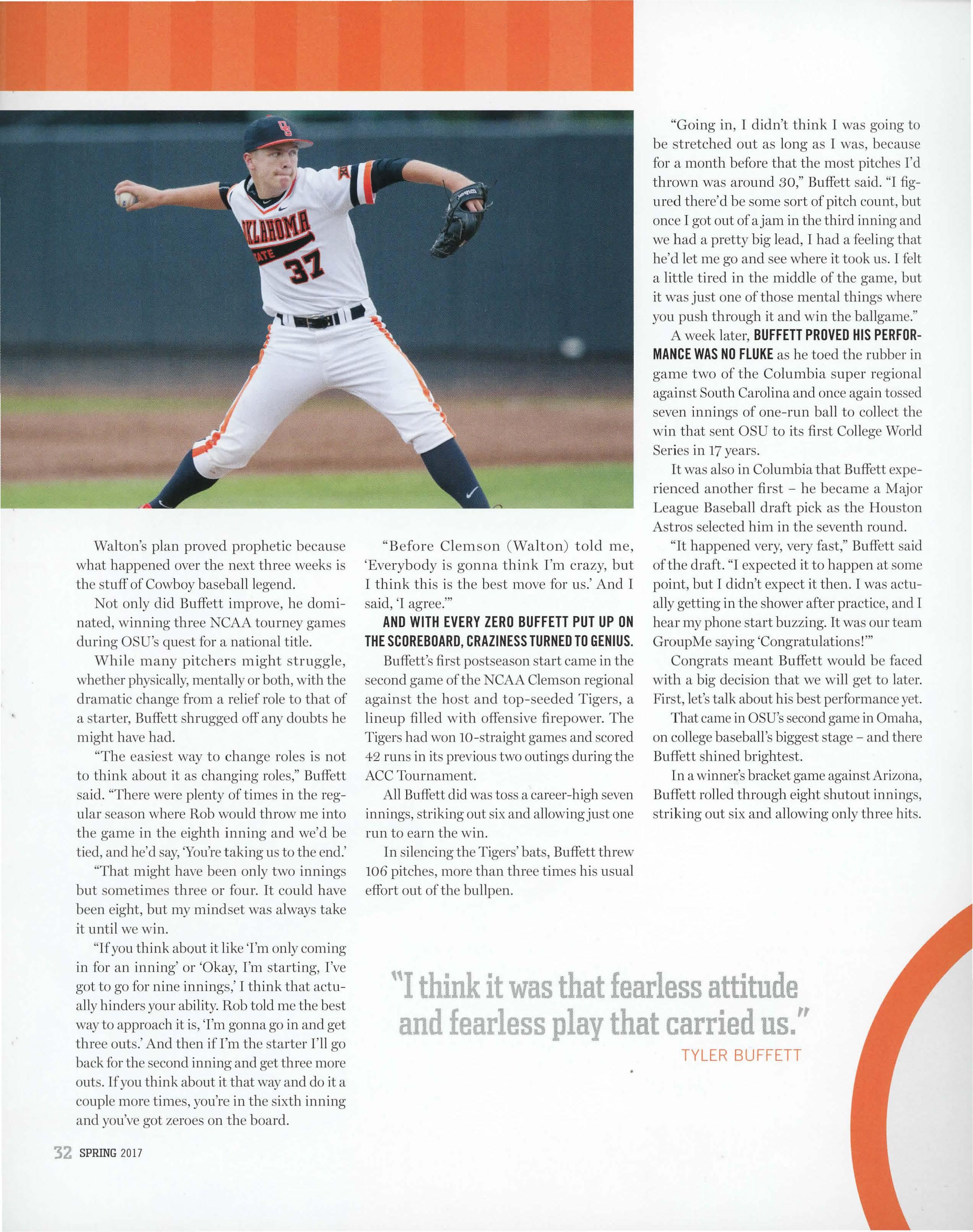 If you were looking for Buffett following the conclusion of Oklahoma State's memorable run to the 2016 College World Series, you wouldn't find him on a mound in Cape Cod or in a bullpen on the West Coast.