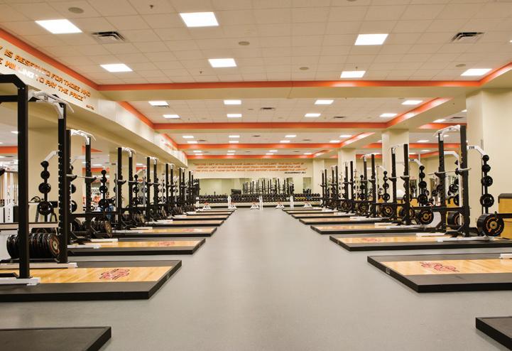 5. 20,000 sq. ft. strength and conditioning center with 14’ ceilings, four-lane 40 yard dash track and mondo flooring throughout.
