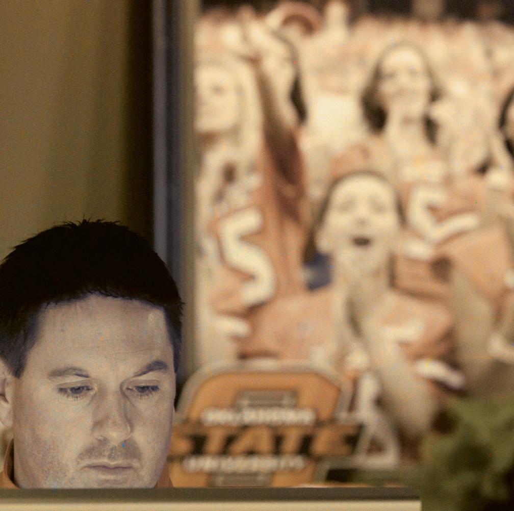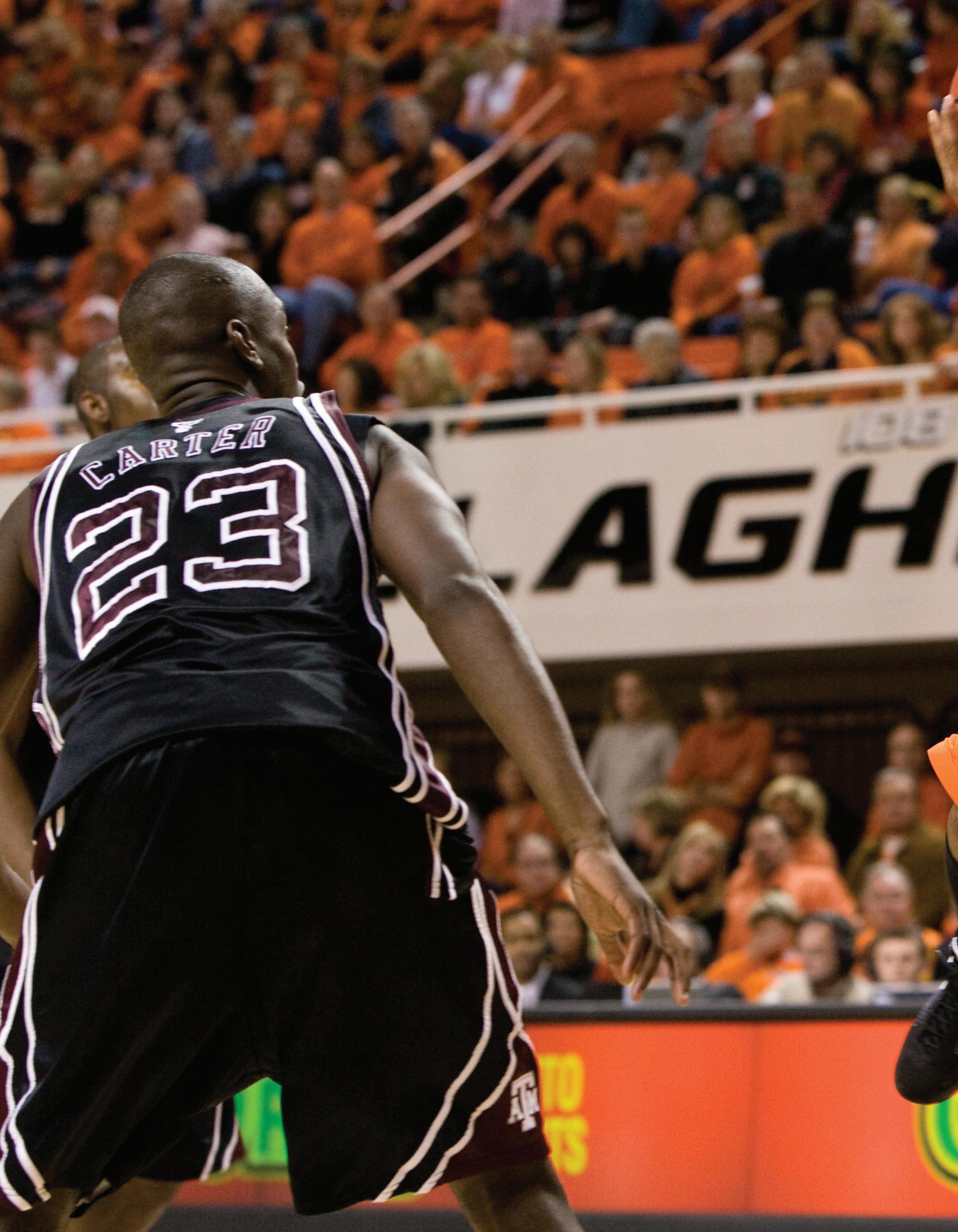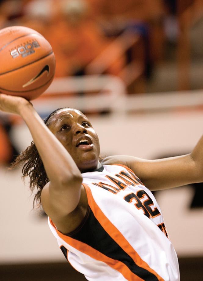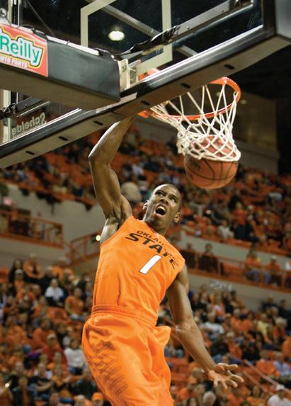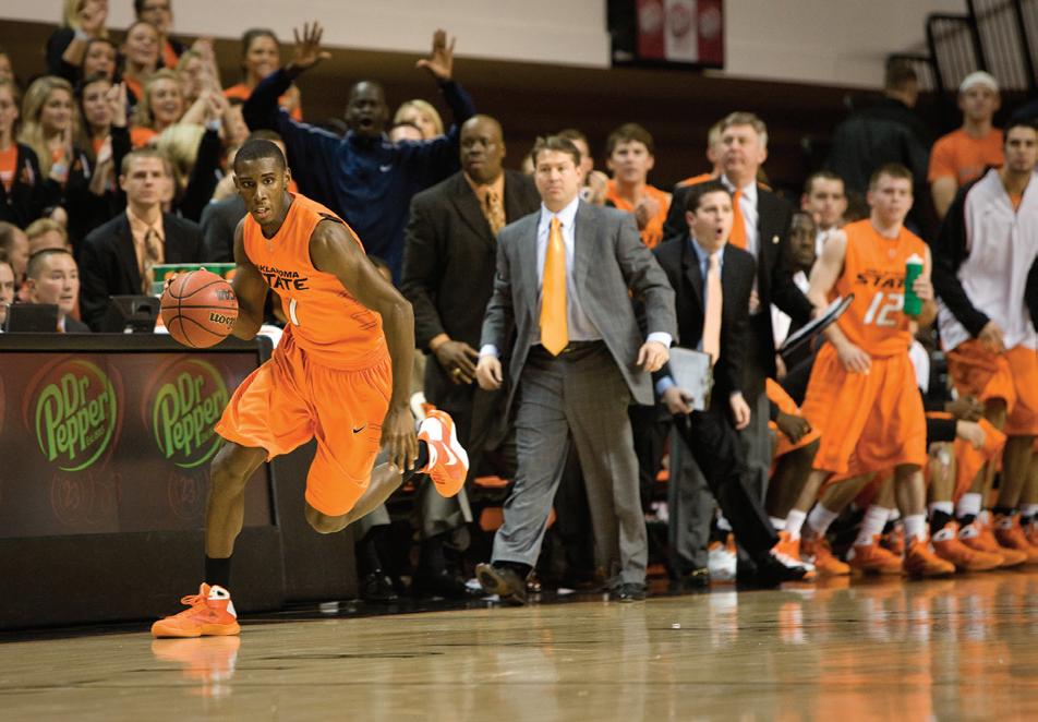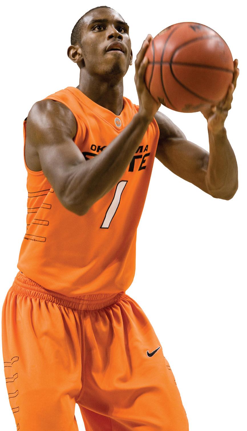 cold outside Gallagher-Iba Arena. It’s December. Campus is deserted. A dense fog drapes the historic building, wrapping Hall of Fame Avenue in a white haze so thick that only Boone Pickens Stadium, the National Wrestling Hall of Fame and Bennett Hall’s graceful modifi edGeorgian architecture poke through. On Eddie Sutton Court, Terrel Harris has his teammates rolling.