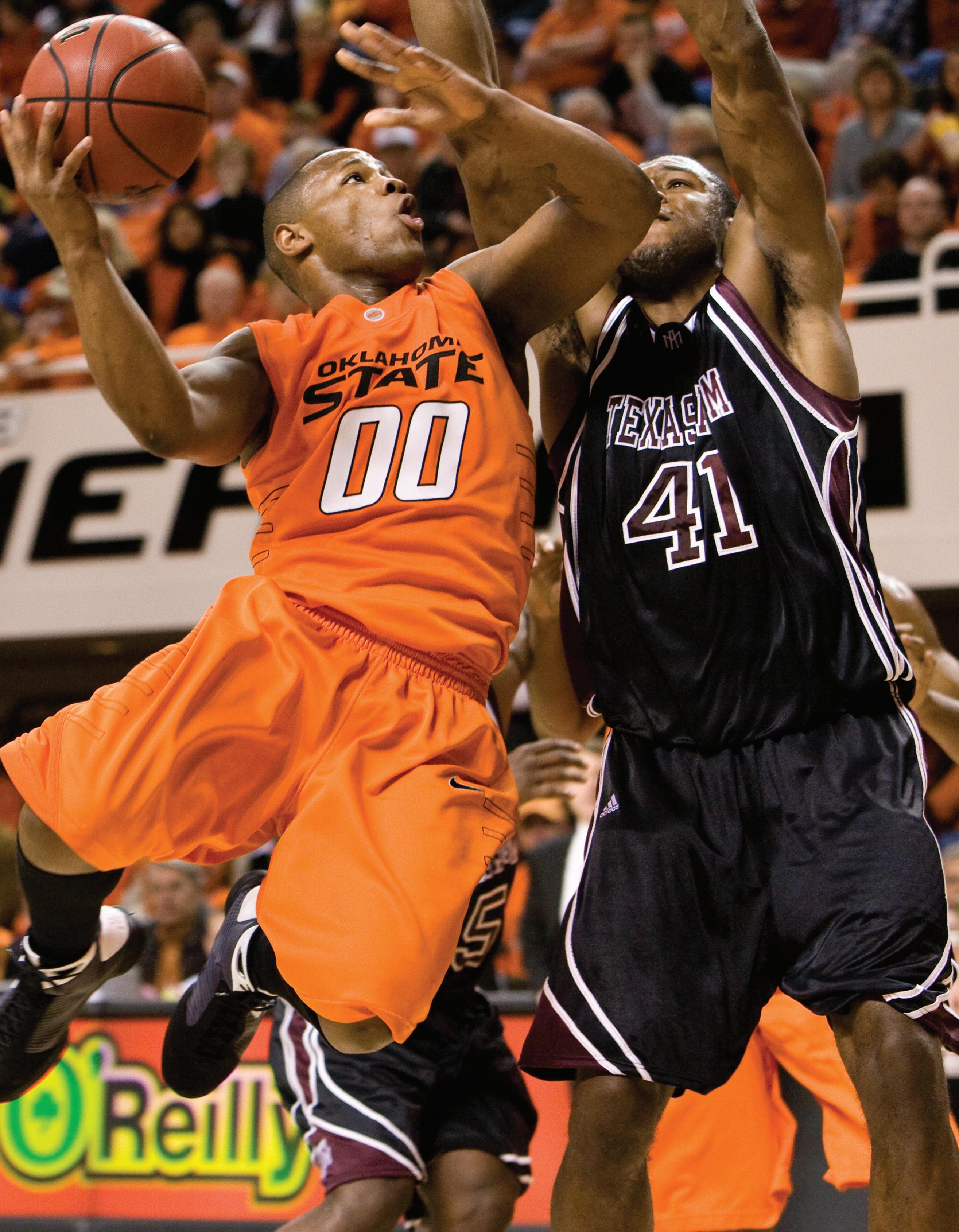 Lately, Harris has been slayin' ’em on the court, too. Just about all of his stats – minutes, points, rebounds, blocks, steals and assists – are up over last year. Harris is benefiting from fi rst year head coach Travis Ford’s run-and-gun style that had the Cowboys averaging more than 83 points per game in February. Harris, a senior, was third on the team in scoring after conference play began, hitting