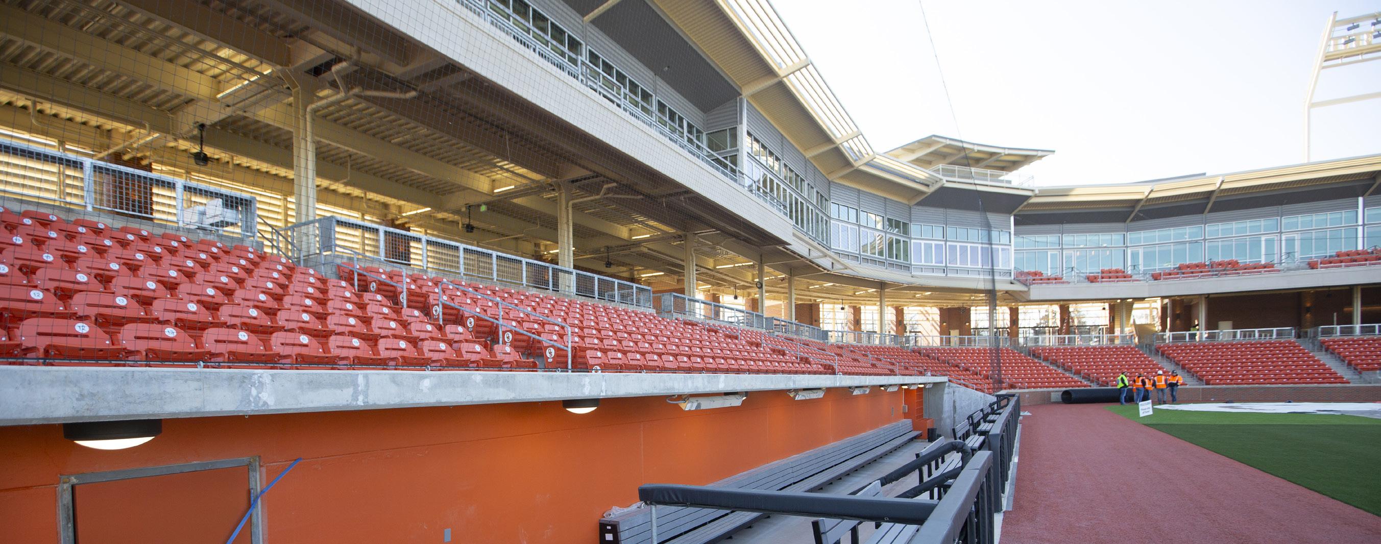O’Brate Stadium, the new home of Cowboy Baseball, awaits its christening. The state-of-theart ballpark’s grand opening was postponed in March due to COVID-19, just as crews were putting the finishing touches on the facility.