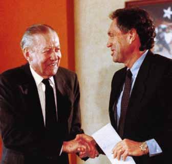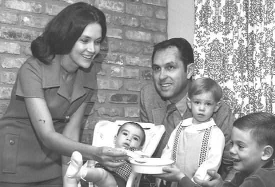 Eddi E and PatSy Sutton, above , with their three boys: StE vE , S E an and Scott. ab E lE mon S, far left , with Eddi E , when Sutton was coaching at Arkansas. Eddi E , above left , shakes hands with m r. i ba at a press conference when Sutton returned to OSU to coach.