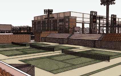 “Mike and Anne Greenwood have stepped forward to help us build the tennis facility. There will be six indoor courts and an additional 12 outdoor courts,” says Houck. “We will get the outdoor courts in, but not much more. At least we have the building and the outdoor courts, and we will have a grandstand essentially against the building looking south.