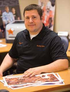 A lot of times, if you walk into the office and have a question about payments or something, Stephanie is the person you’re going to sit down and talk to. She’s the main liaison between the POSSE and the o SU Foundation . She manages the coordination of information. If you look at who’s processing the money from our donors, 90 percent of that is Stephanie. A lot of her time is spent interacting with donors, whether on the phone or face-to-face.