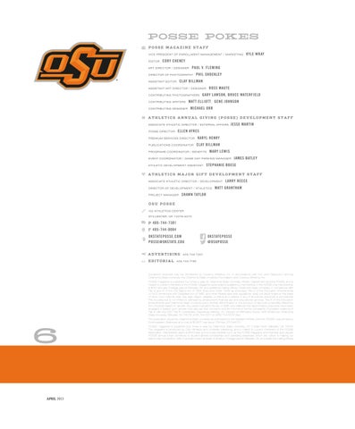 This publication, issued by Oklahoma State University as authorized by the Assistant Athletic Director, POSSE, was printed by Southwestern Stationers at a cost of $0.9577 per issue. 10M/Apr 2013/#4701.