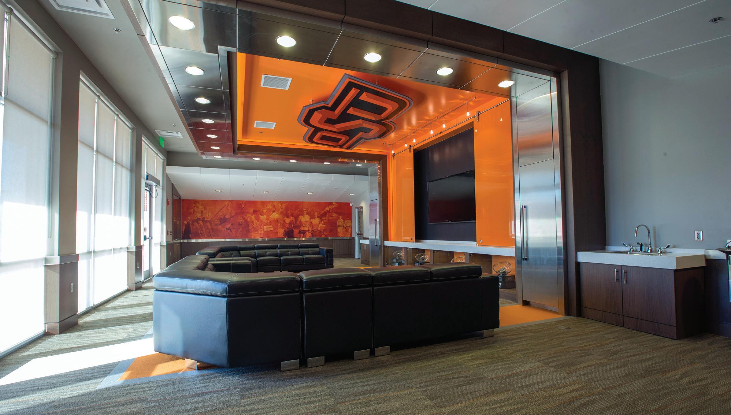 The first phase of Orange Power Studios will include o ces for OSU’s video production sta , internet services team and photographer, along with a control room and studio. Plans for the next phase will include a second control room, which will allow OSU to provide live television programming while producing the in-house show (scoreboard video) simultaneously. For the past several years OSU has partnered with Cox Communications for video production needs. Cox has also produced OSU’s limited third-tier programming and, in conjunction with Learfield Sports, has produced OSU coaches’ shows.