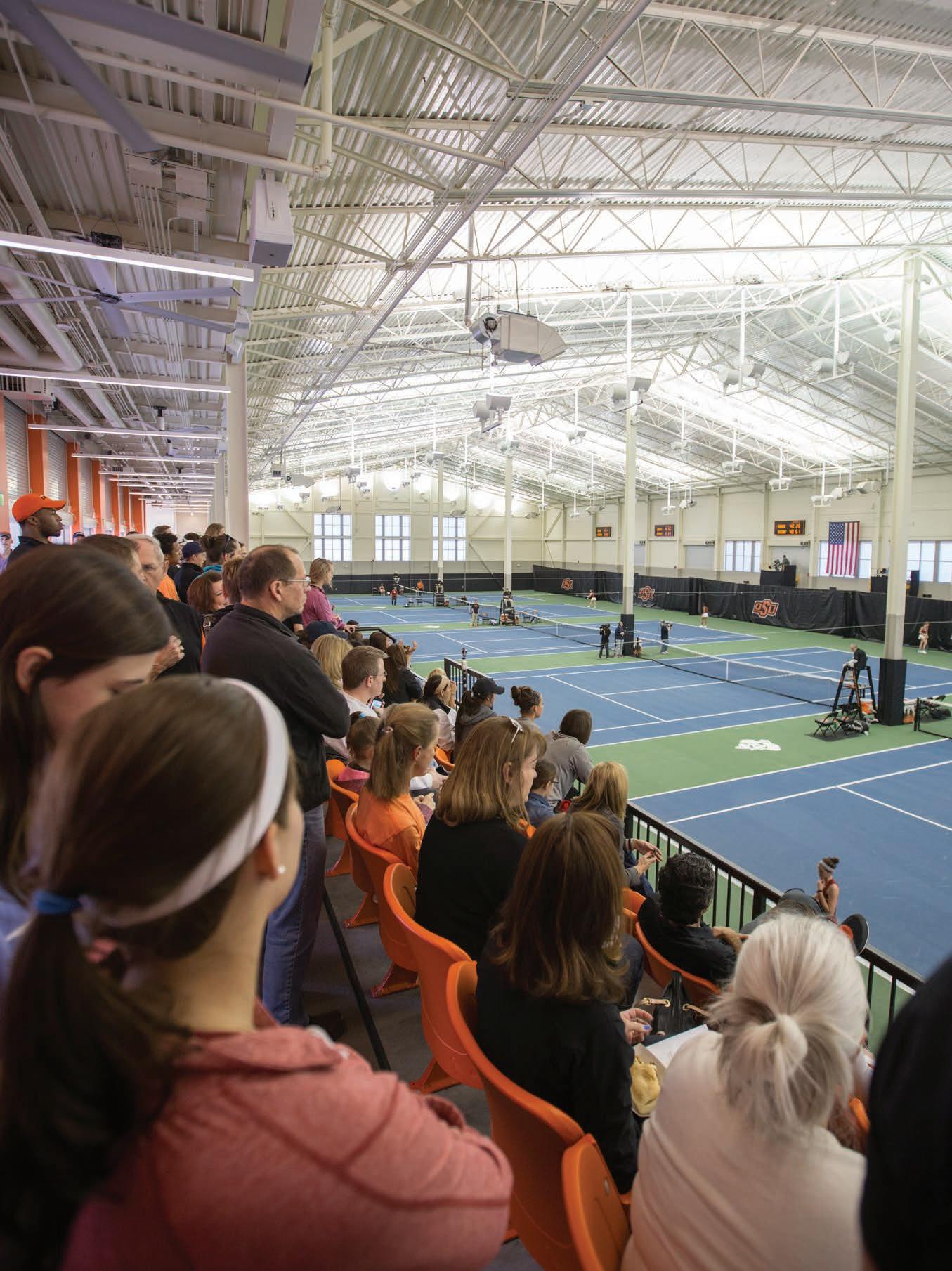 In October 2012, construction began on the Michael and Anne Greenwood Tennis Center, located on the southeast corner of the Washington and McElory. The new facility, expected to be completed this spring, features 12 OUTDOOR COURTS, SIX INDOOR COURTS, LOCKER ROOMS, A SPORTS MEDICINE AREA, and ELEVATED SEATING GALLERIES. It is an absolute game changer for the tennis programs. In one of the first events held inside the facility, the Cowboy men’s team shocked sixthranked Tennessee in front of a roaring and capacity crowd. The women’s tennis program, thanks in part to the new facilities, has pulled in a recruiting class ranked among the top five in the country.