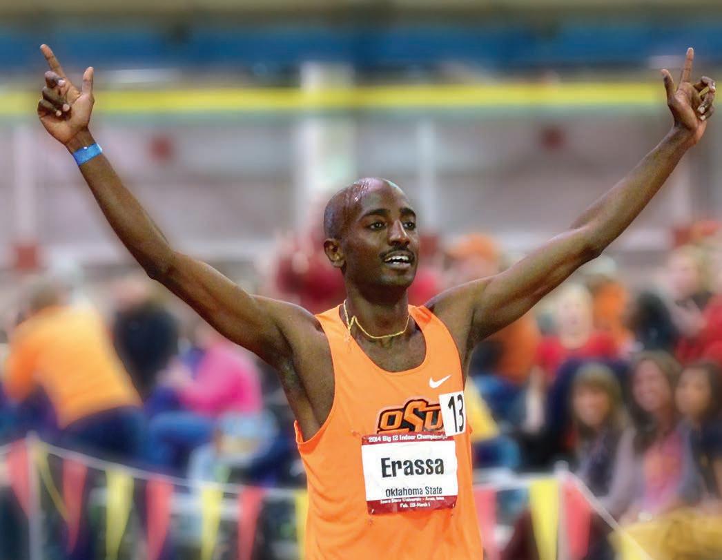 At the Big 12 Indoor Track & Field Championships, in Ames, Iowa, Kirubel Erassa, below, became the first athlete in school history to win three individual conference titles at the same meet.