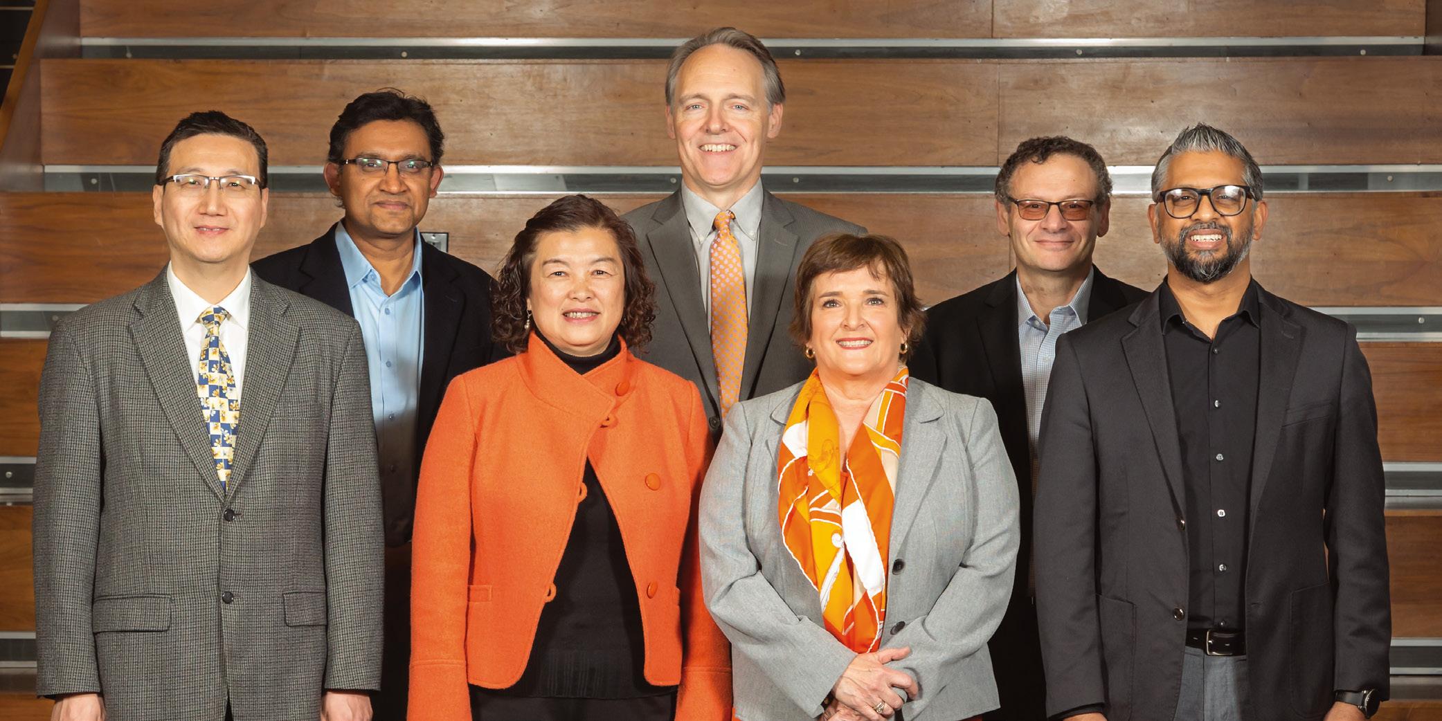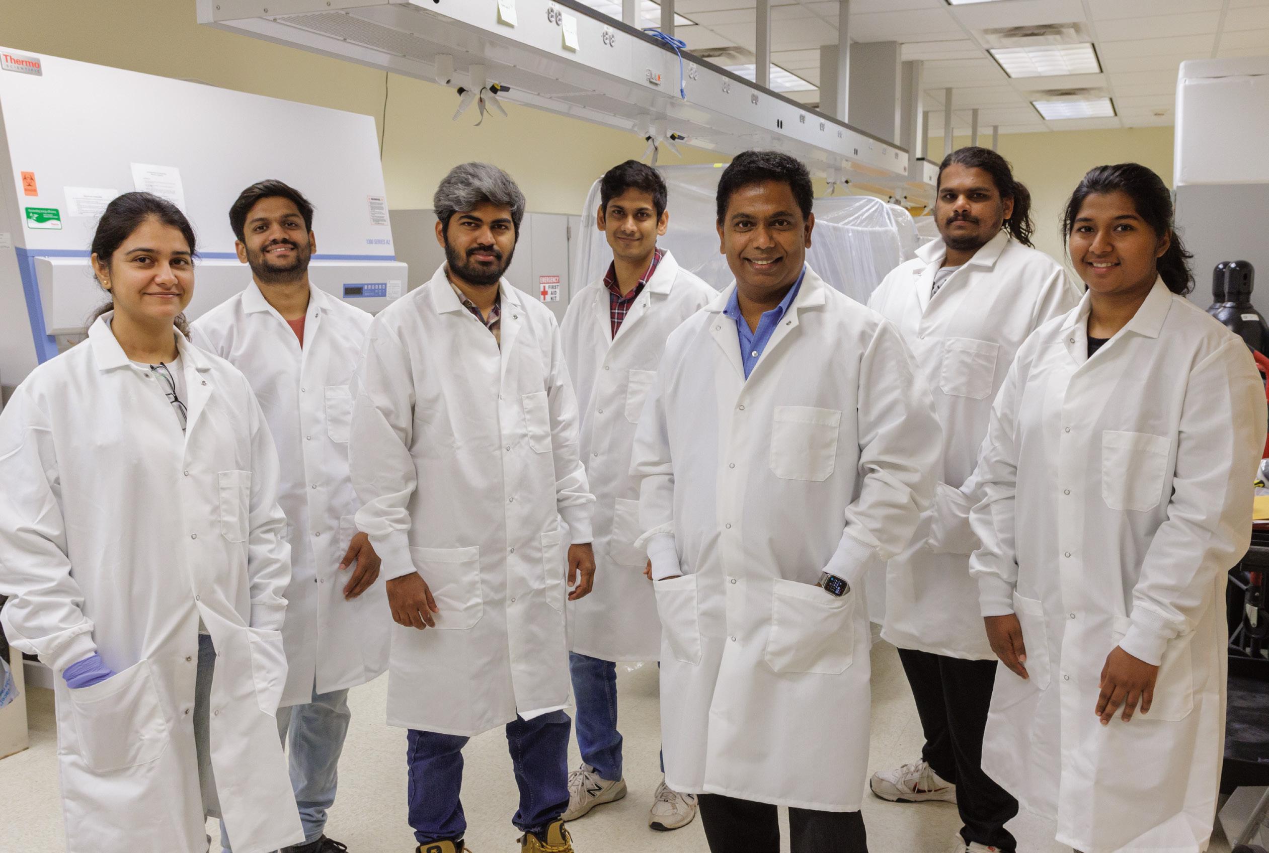 From left: Dr. Guoliang Fan, Dr. Akhilesh Ramachandran, Dr. Ning Wang, Dr. Thomas Lanners, Dr. Betty Simkins, Dr. Mostafa Elshahed and Dr. Tilanka Chandrasekera.