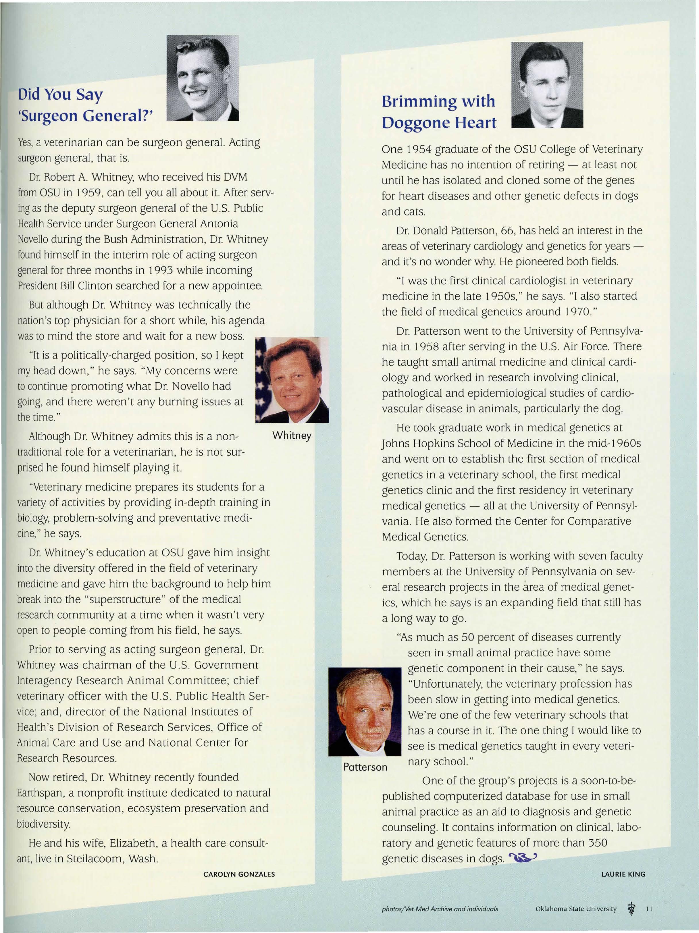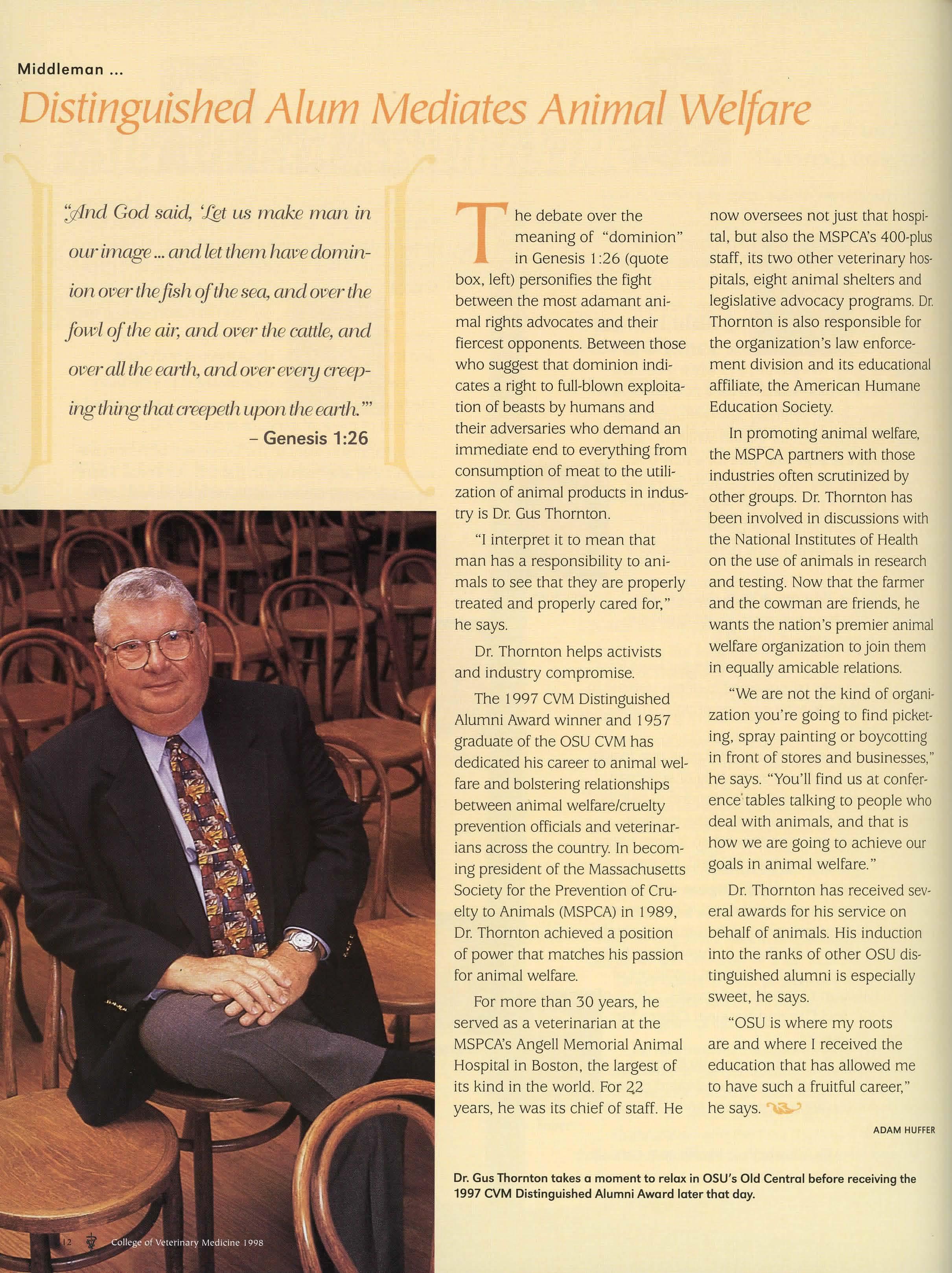 make to society, and OSU can be very proud of the veterinarians who are alumni of this institution.