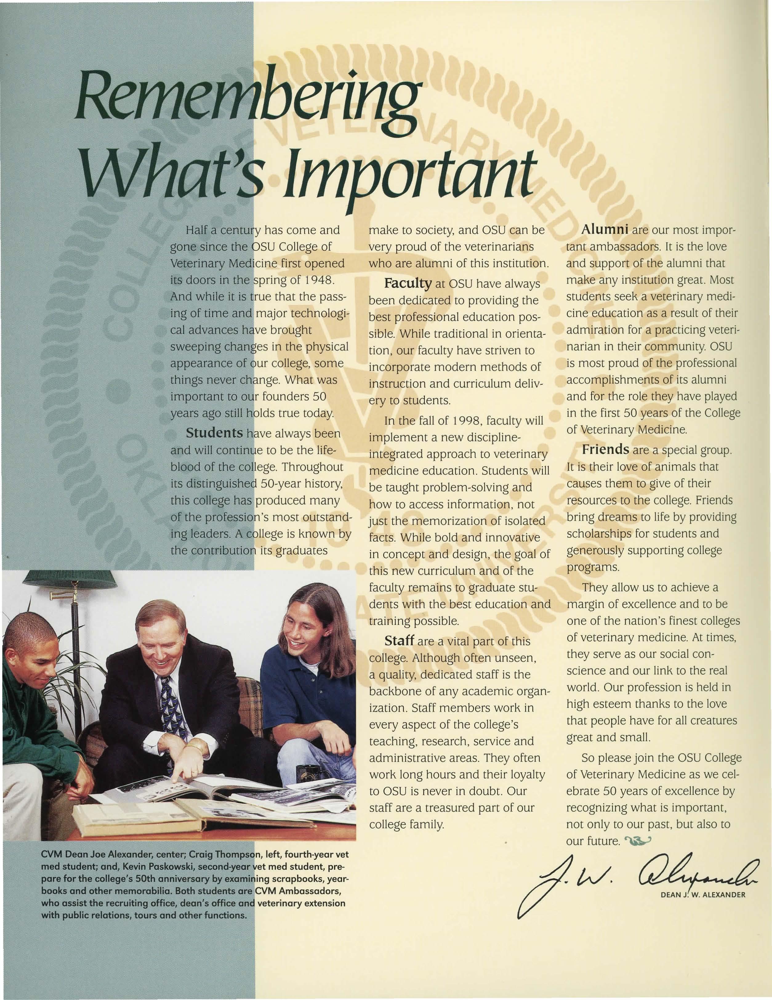 So please join the OSU College of Veterinary Medicine as we celebrate 50 years of excellence by recognizing what is important, not only to our past, but also to our future.