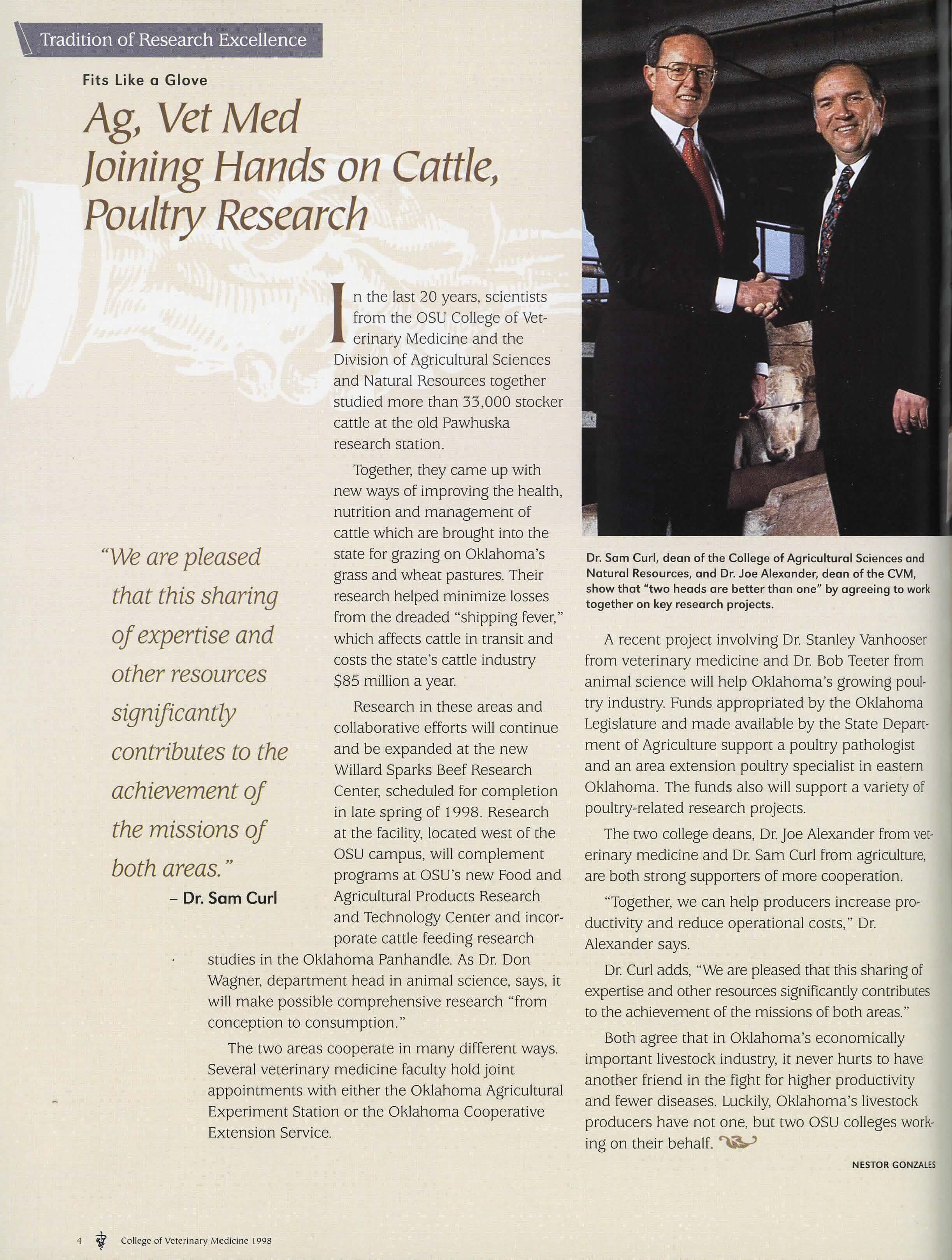 The two college deans, Dr. Joe Alexander from veterinary medicine and Dr. Sam Curl from agriculture, are both strong supporters of more cooperation.