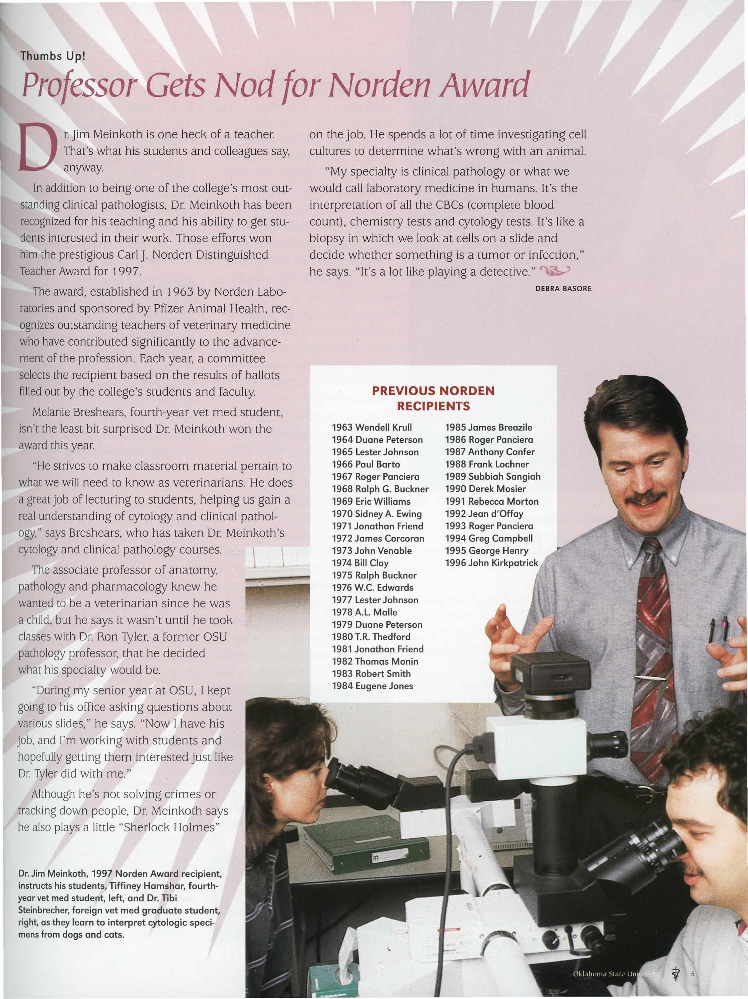 Vet Med Magazine is o publication of the Oklahoma State University College of , Veterinary Medicine. Its purpose is to connect this college with its many stakeholders, providing information on both campus news and pertinent issuesin the field of veterinary medicine. Oklahoma State University© 1998