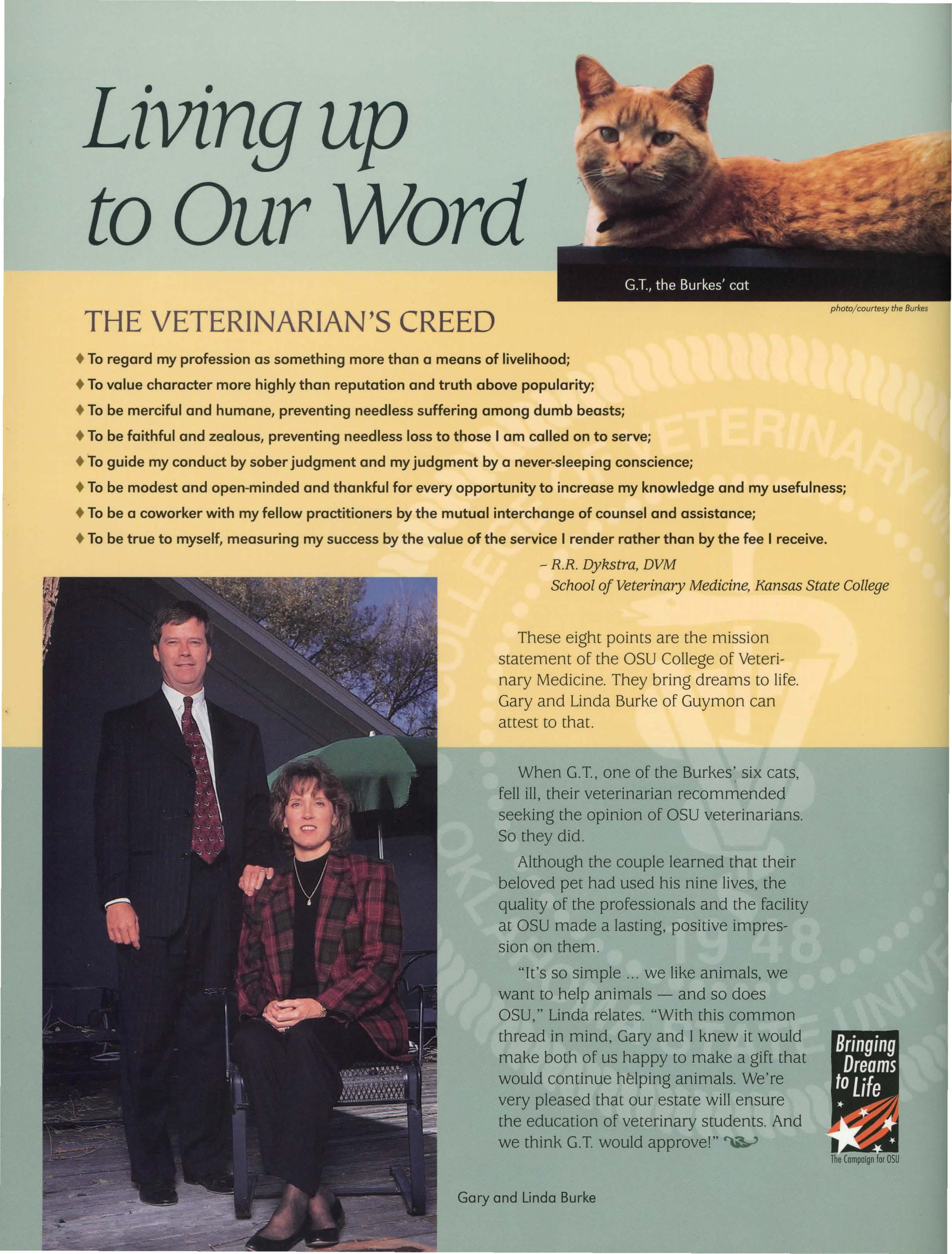 These eight points are the mission statement of the OSU College of Veterinary Medicine. They bring dreams to life. Gary and Linda Burke of Guymon can attest to that.