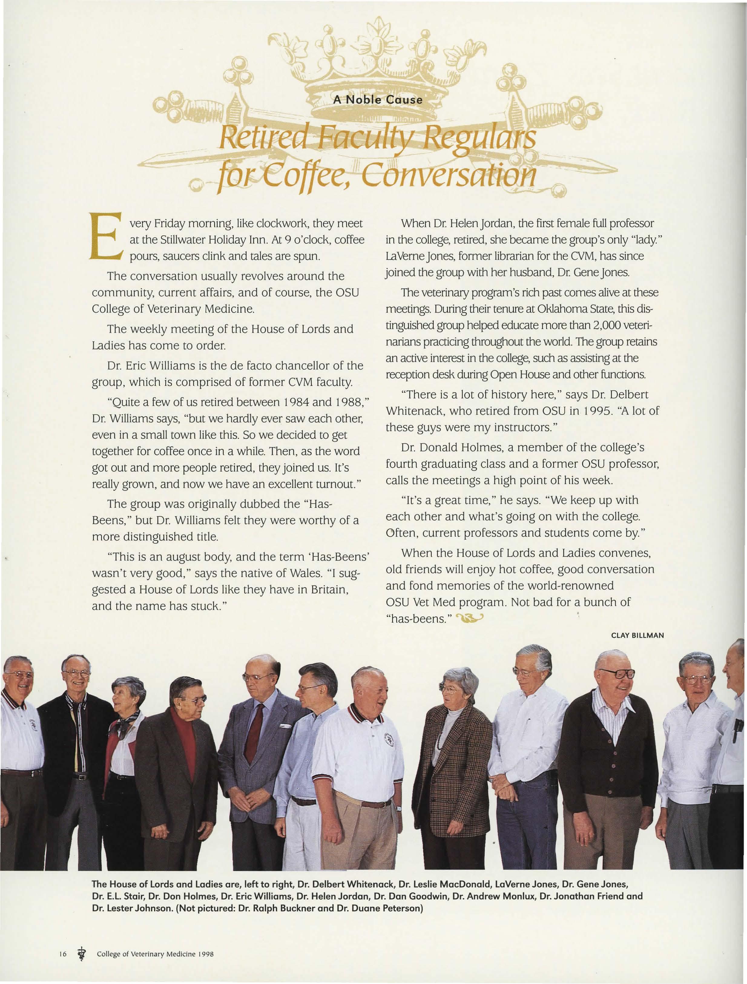 When the House of Lords and Ladies convenes, old friends will enjoy hot coffee, good conversation and fond memories of the world-renowned OSU Vet Med program. Not bad for a bunch of "has-beens."