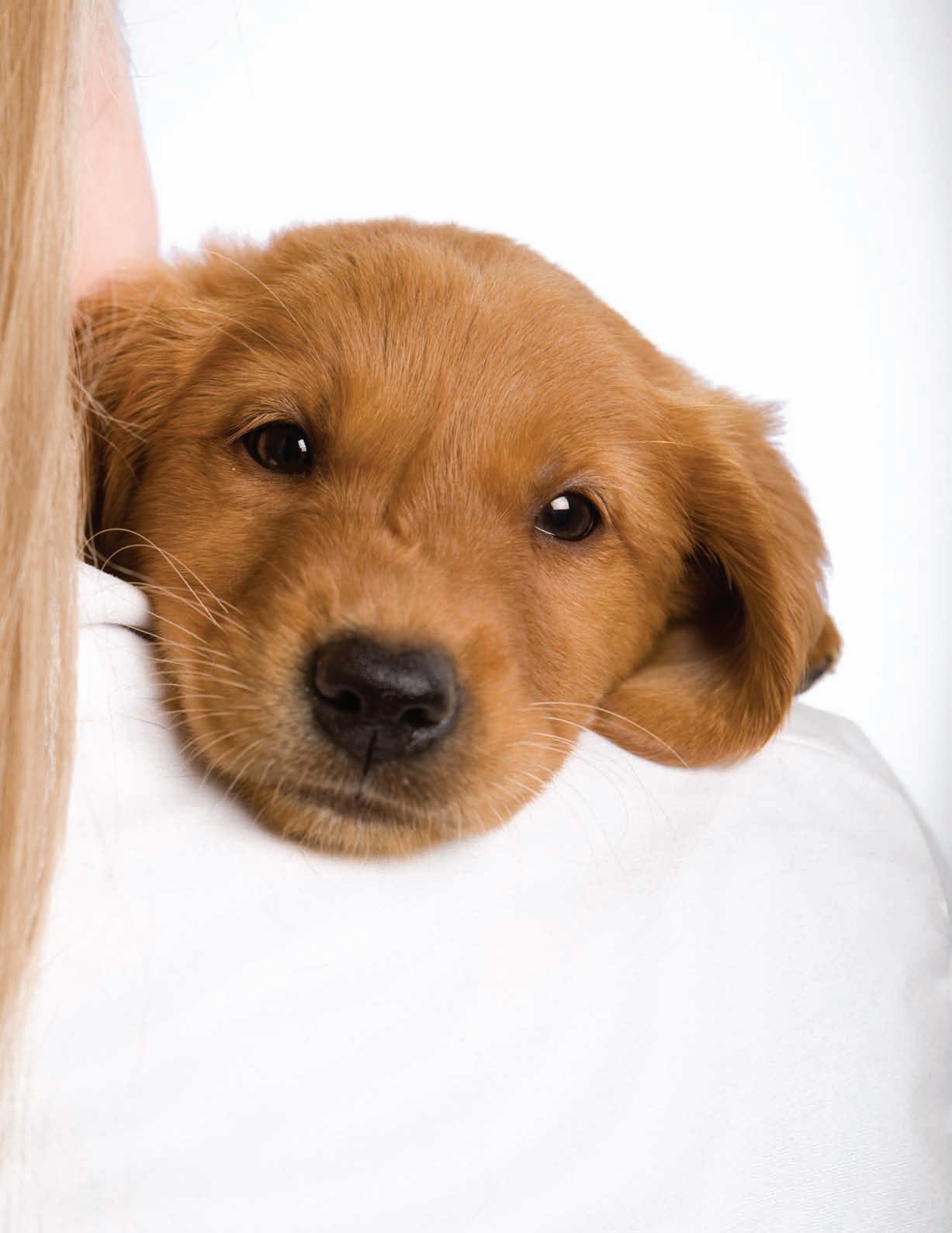 Meet Wallace , a six-week-old Golden Retriever, owned by Joseph McCann, Ph.D. and associate professor in the center’s physiological sciences department. McCann and his wife Dr. Maria DiGregorio , class of 1992, own Baker Animal Clinic, Stillwater, Cleveland Veterinary Clinic, Cleveland, Okla., and RockErin Kennels LLC, east of Stillwater, where Wallace was born. The couple has been breeding and training field-bred Golden Retrievers and Labrador Retrievers for 24 years. Their Golden Retrievers are standouts due to their field ability as hunting dogs and field-trial competition dogs, suitability as family companion animals, red-to-dark color and their health and longevity.