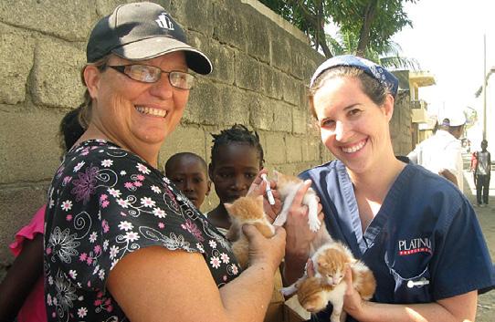 Dr. Jean Sander, dean of the CVHS, offered free veterinary medical services to animal victims.