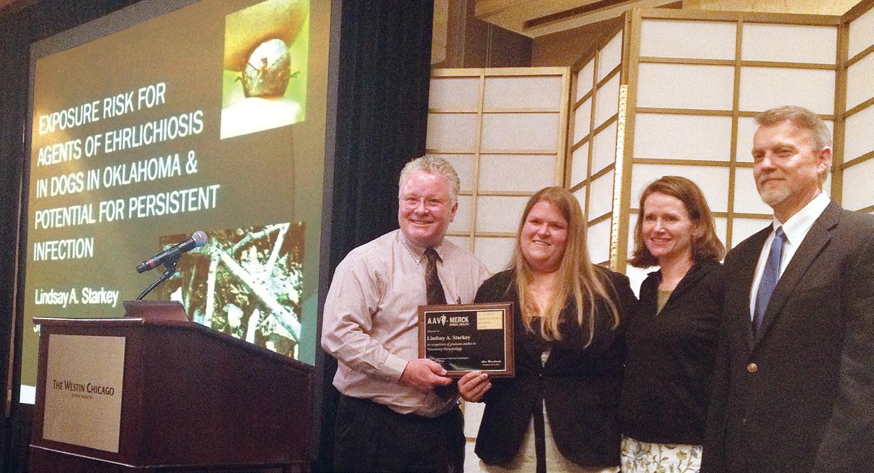 d r S . S A n JAy kAP il , Pr A dyu M n A bAV i S k A r and To M o o M en S each presented at the 32nd a n nual Meeting of the American Society for Virology at the Pennsylvania state University in University Park, Pa. Dr. kapil, professor of virology at the oklahoma animal Disease Diagnostic Laboratory, presented a poster on “Canine Parvovirus Diagnosis and Surveillance in the USA.” Pradyumna Baviskar, a Ph.D. student in Dr. oomens’ lab, gave an oral presentation in the paramyxovirus section entitled, “The RSV fusion protein cytoplasmic tail facilitates an assembly step in the transition from inclusion body to viral filament.” Dr. oomens, assistant professor of veterinary pathobiology, presented a poster on work carried out by osU undergraduate student kelSie brookS and research specialist beCky dunCAn-deCoCQ, titled “The role of secreted G protein in production of infectious RSV.” Dr. oomens was also a co-author on two presentations concerning vaccinerelated rsV work by collaborators of Emory University in atlanta and nationwide Children’s hospital in ohio.
