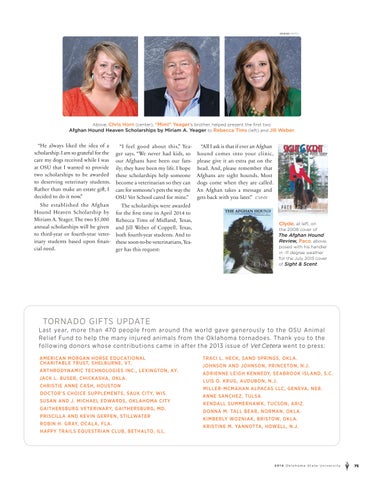 Memorial gifts may be made payable to the Oklahoma State University Foundation, 400 S. Monroe, Stillwater, OK 74074 with a notation in the memo line reading Veterinary Medicine Student Support Fund #28-85500.