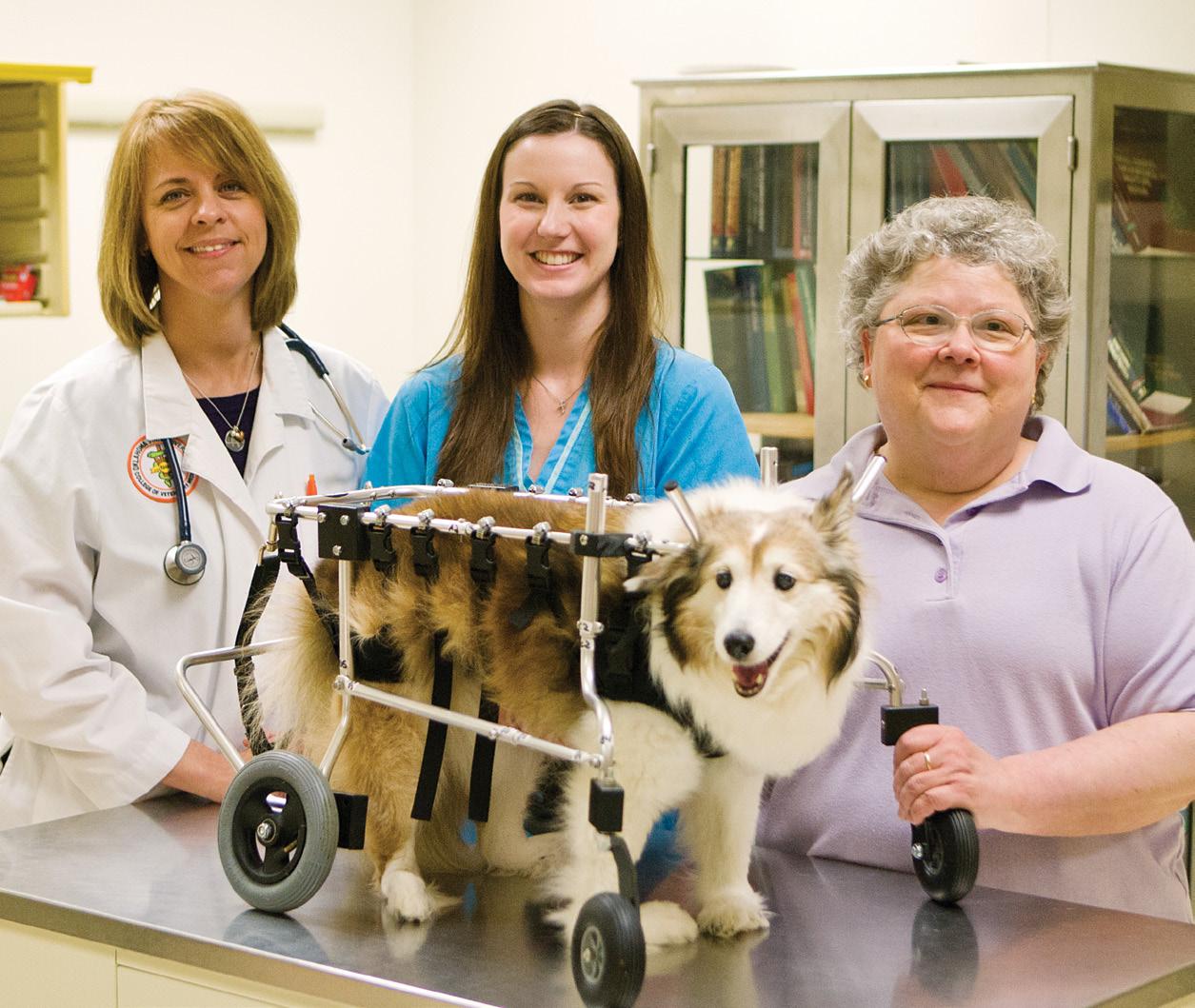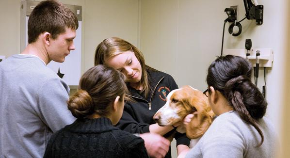 raina Pannee (Class of 2013) examines roz, who is owned by dr. rebecca Morton (’72) in the communications lab, where students practice polishing their ability to talk with future patients’ owners. Story, Page 64
