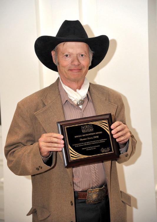 REX OLSON, DVM, opened a mixed animal practice in his hometown of Waynoka, Okla., and served as the veterinarian at livestock auctions in Seiling and Woodward. He also ser ved on the Oklahoma Veterinary Medical Association’s Board of Directors. After contracting Brucellosis, which reduced his energy level, he sold his practice in 1983. With a friend, he formed Santo Resources Inc., operating oil and gas wells. Olson passed away Oct. 27, 1997.