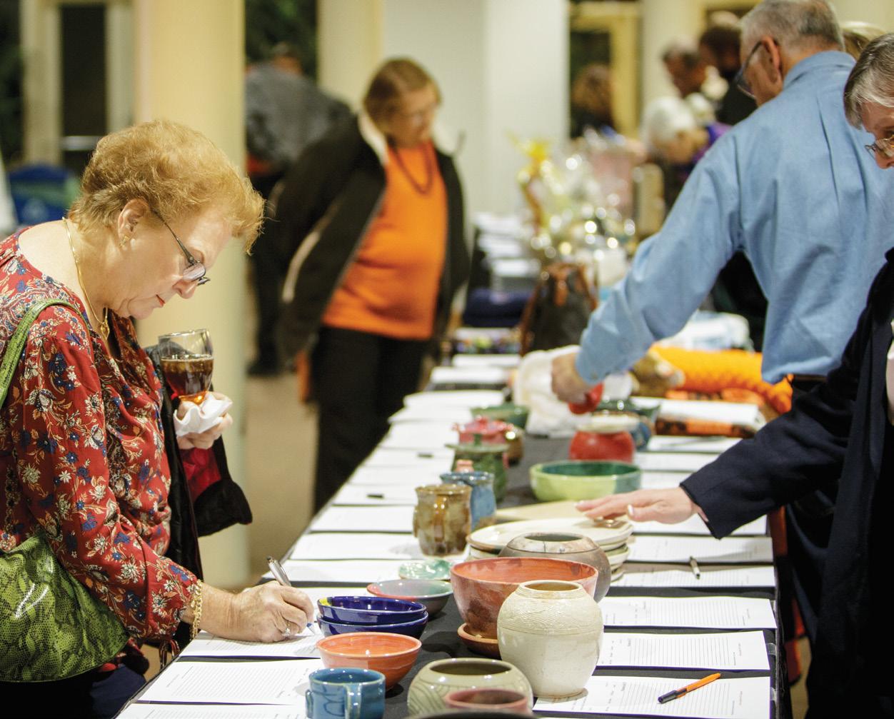 Items in the silent auction drew bids from many, including Mrs. William McClees (left) and others.
