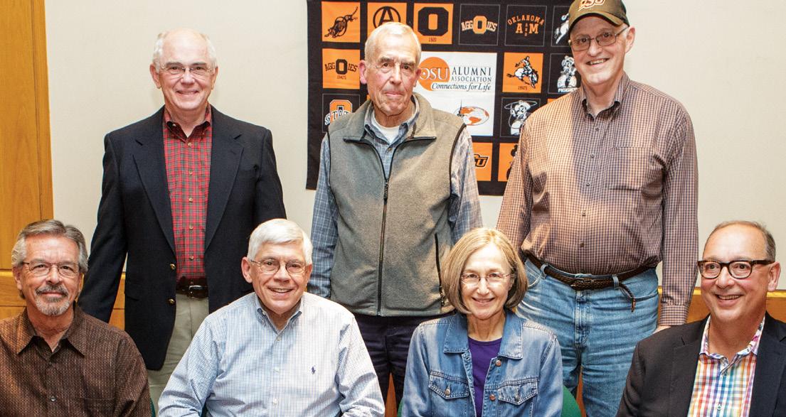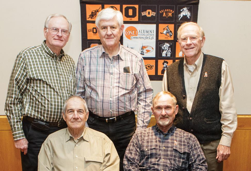 Health Sciences reunited with members: seated (from left): William Lance, Larry Edwards, Duane Lemburg, Wade Markham, Paul Frith and L.D. Barker